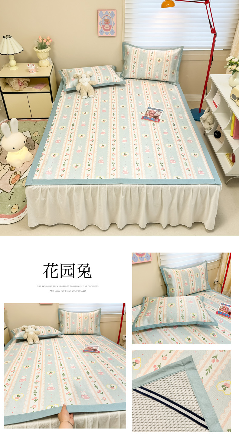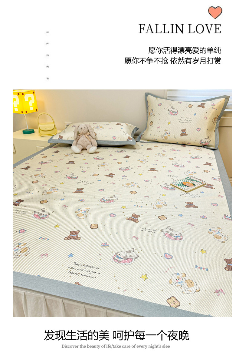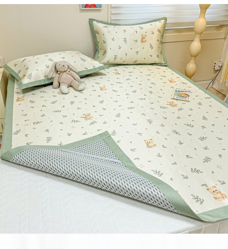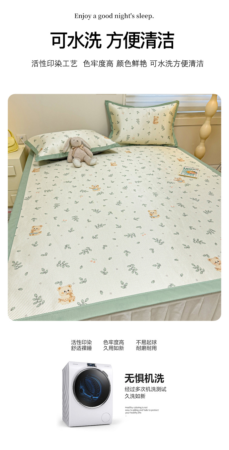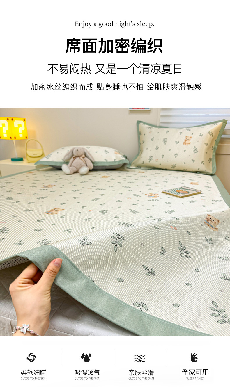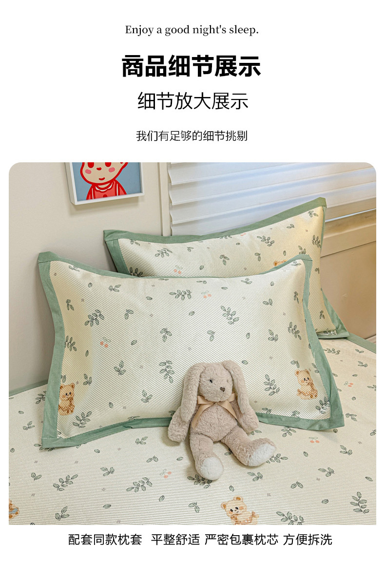 商品名称:慕尚家纺 2025新款600D小清新凉感冰丝凉席三件套 皮卡熊