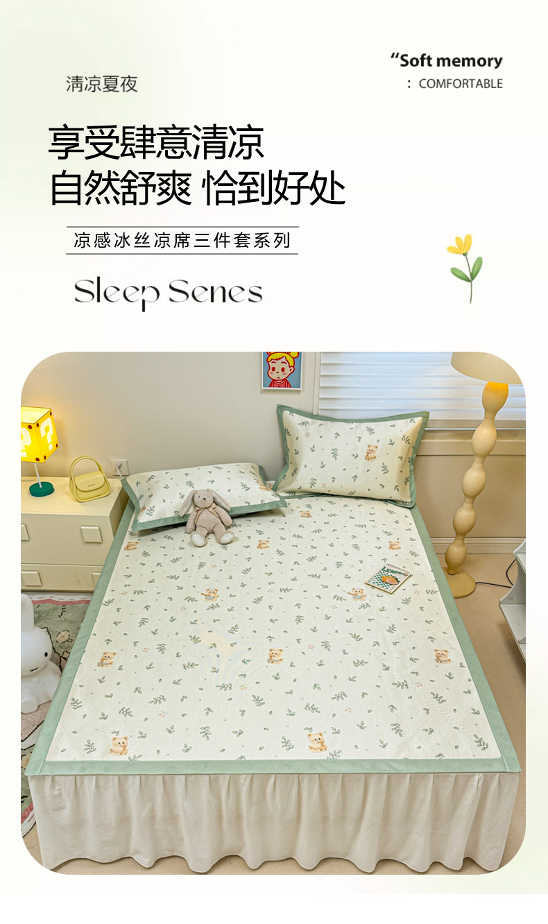 慕尚家纺 2025新款600D小清新凉感冰丝凉席三件套 皮卡熊