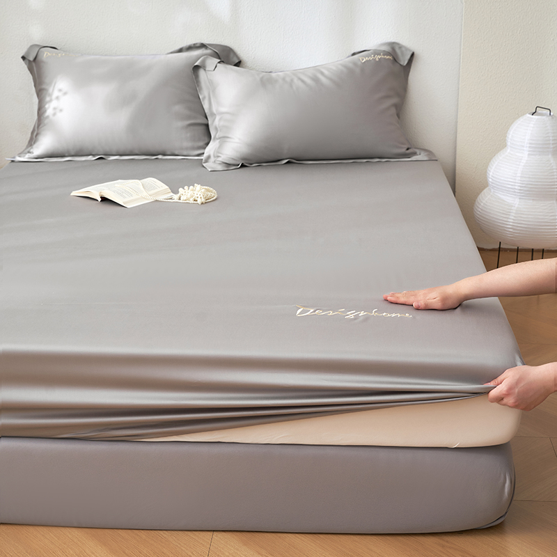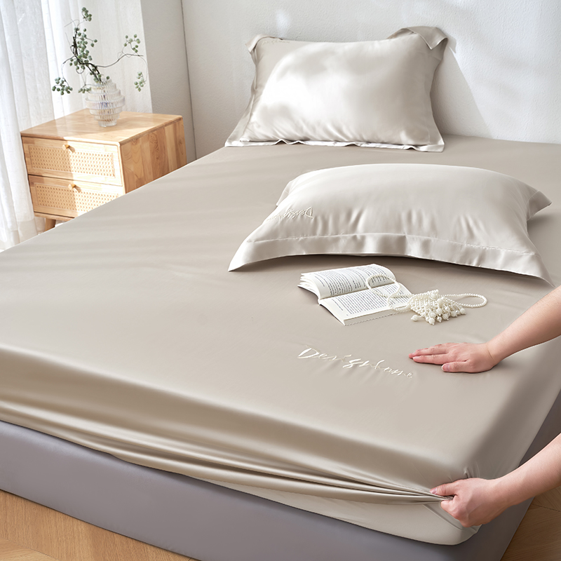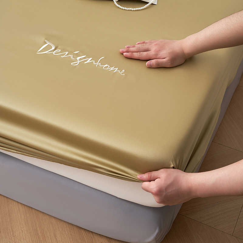 黛舒家居 2025新款60S兰精天丝纯色简绣单床笠 琥珀黄