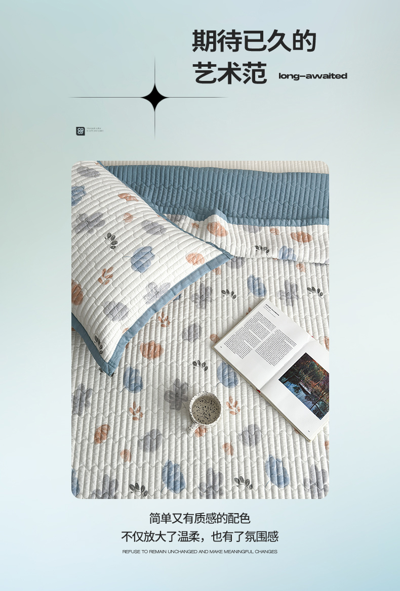 • 91家纺网 家纺一手货源 找家纺 美优兰 2025春夏新款双面天丝高温砂洗床盖 蓝海
