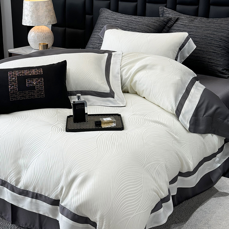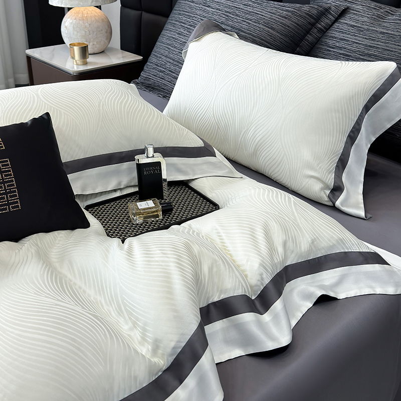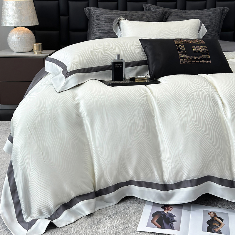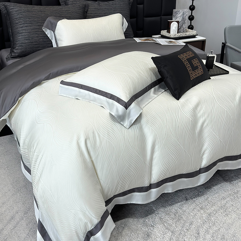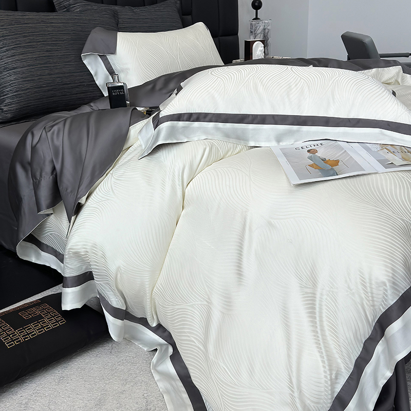 商品名称:若未家居 LOVEWE HOUSE 2025新款天丝提花套件撞色轻奢风四件套-天丝布拉格 天丝布拉格 奶昔白
