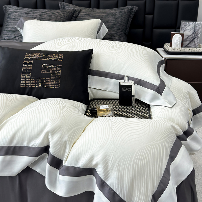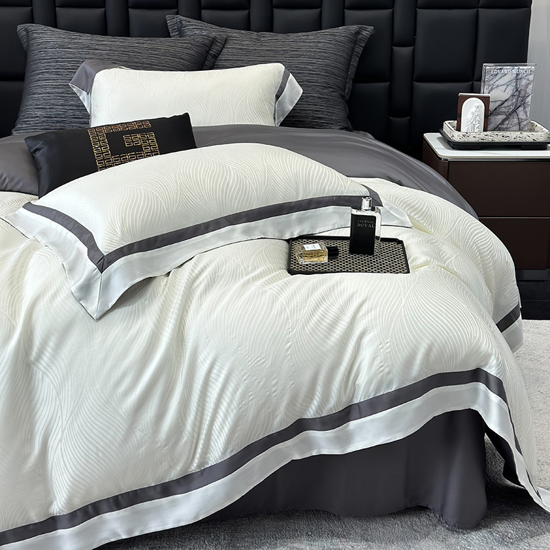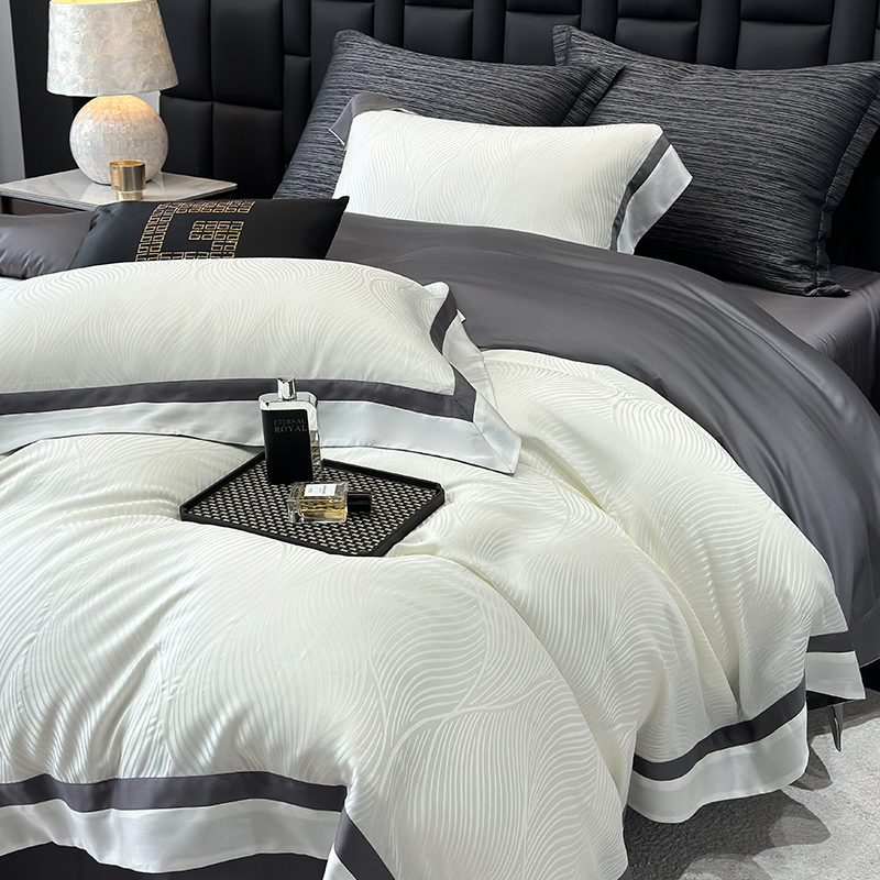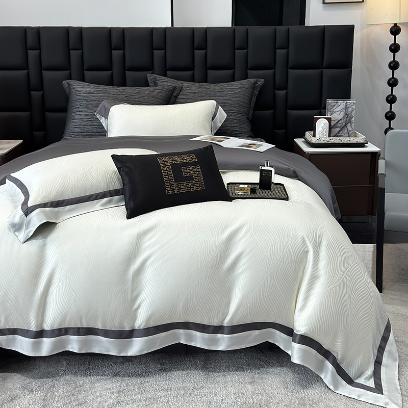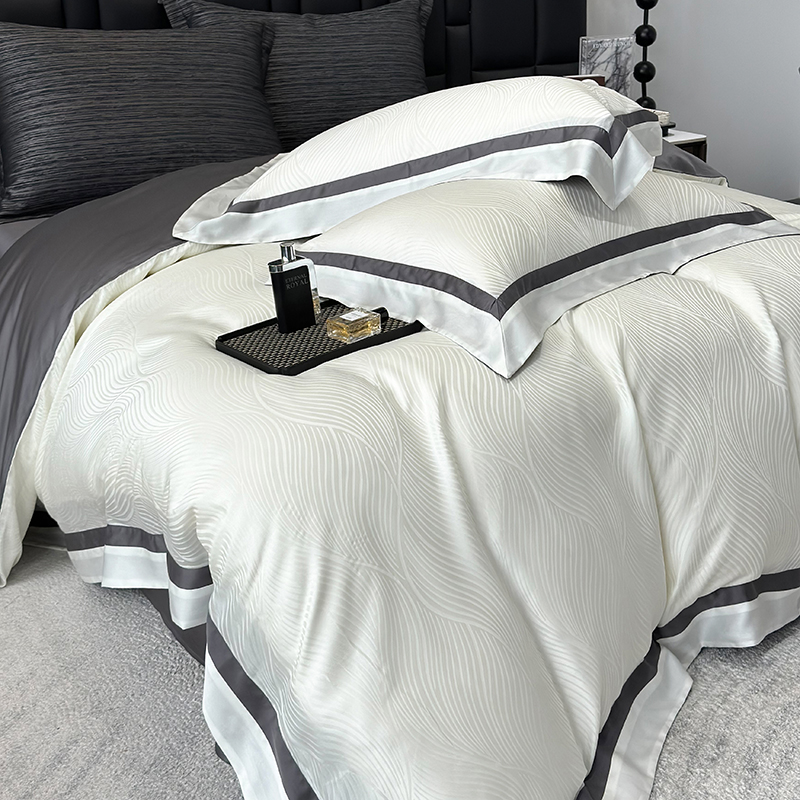 商品名称:若未家居 LOVEWE HOUSE 2025新款天丝提花套件撞色轻奢风四件套-天丝布拉格 天丝布拉格 奶昔白