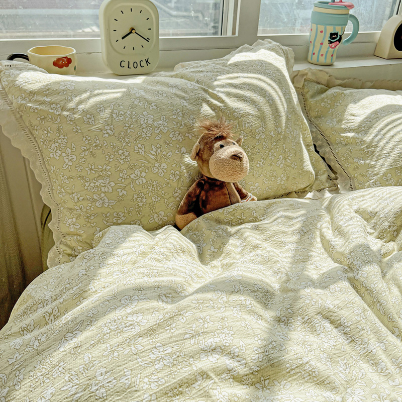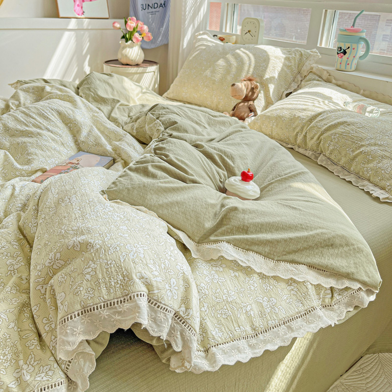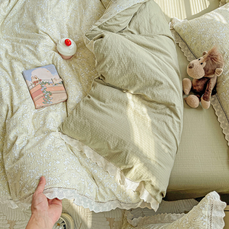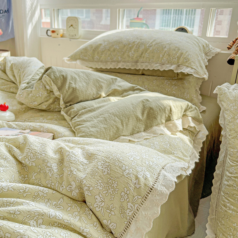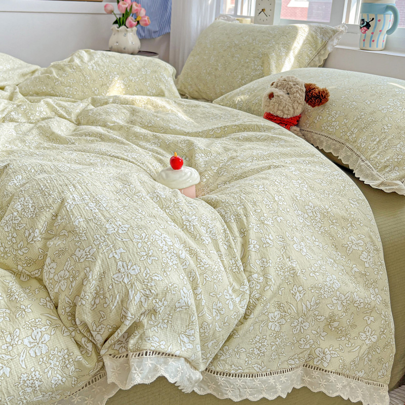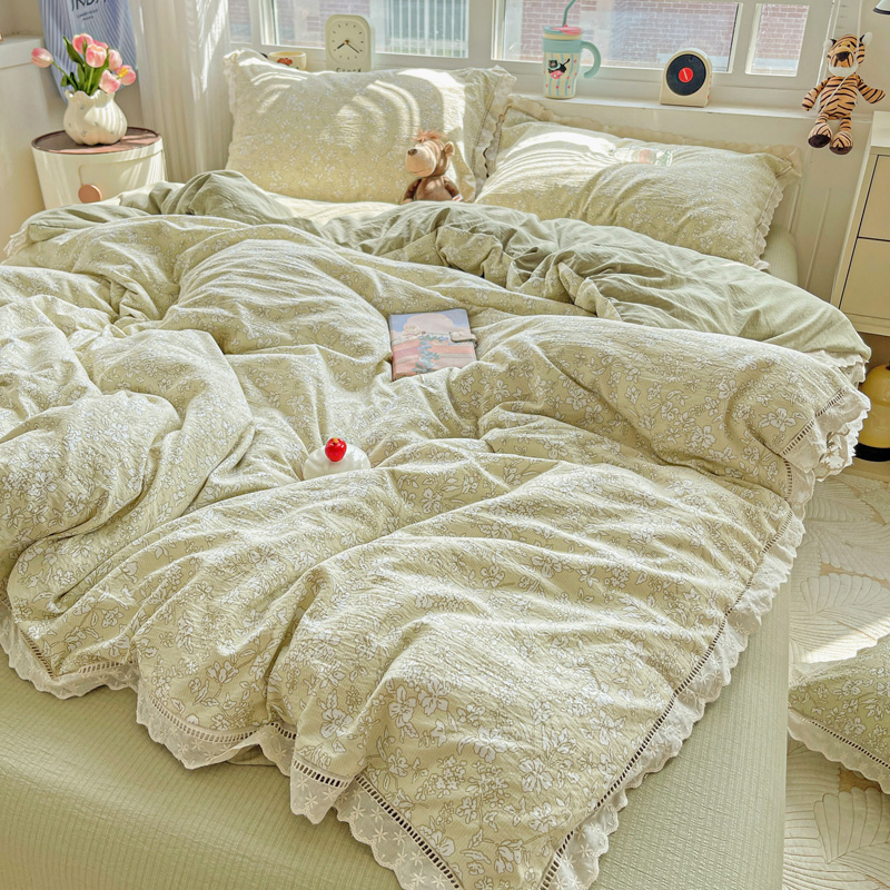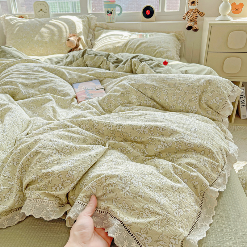 仟网汇 2025新款云感皱皱双层纱全棉花边四件套 春晓