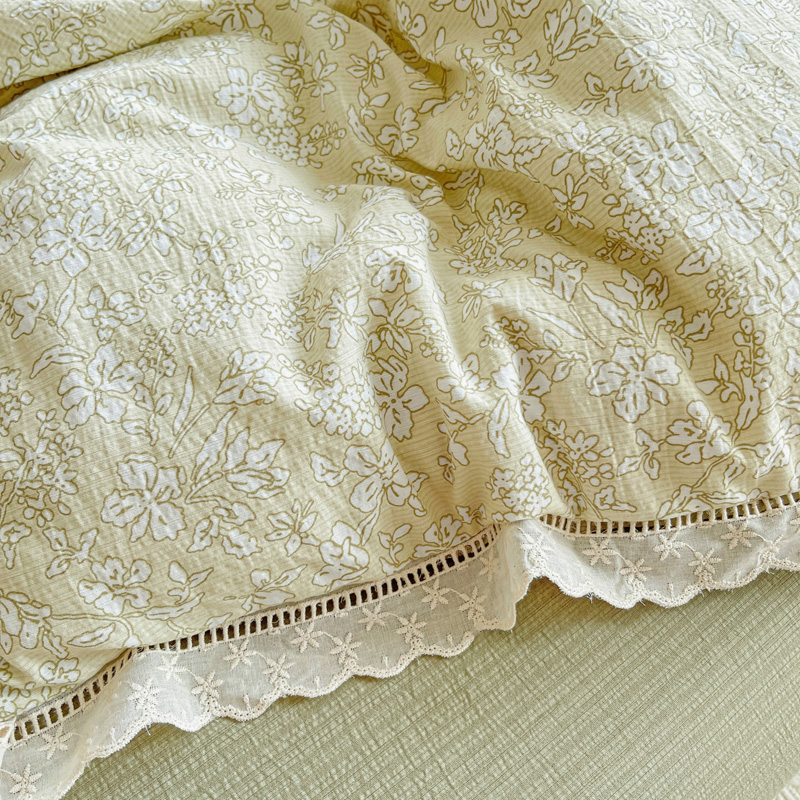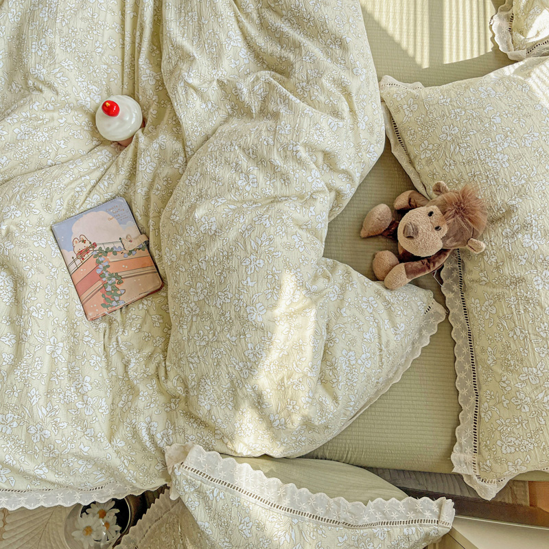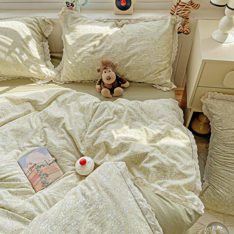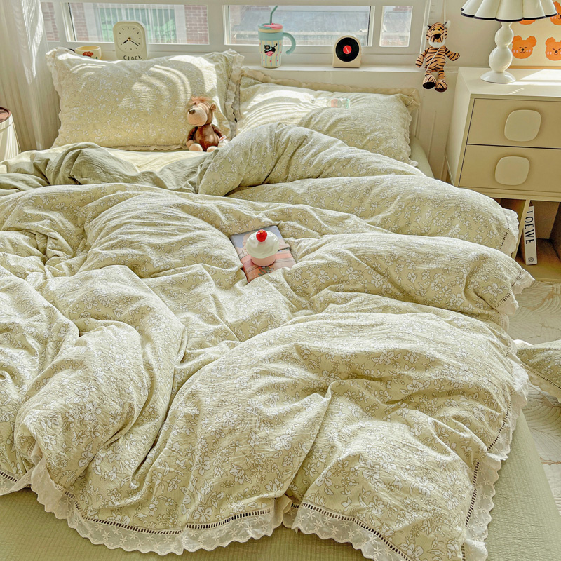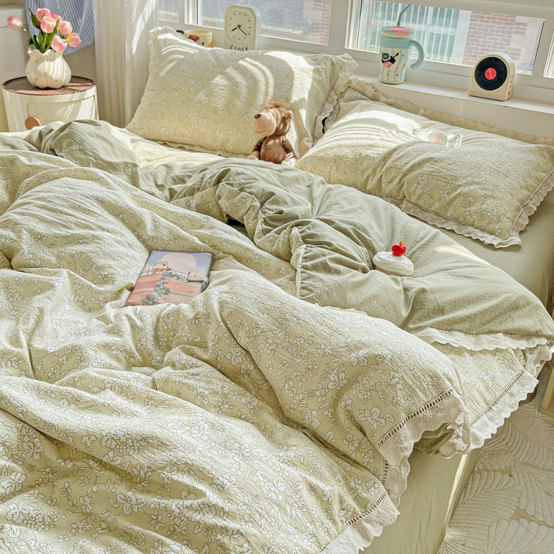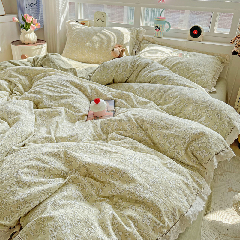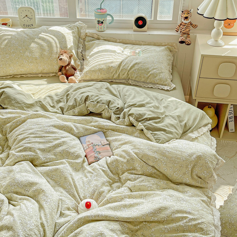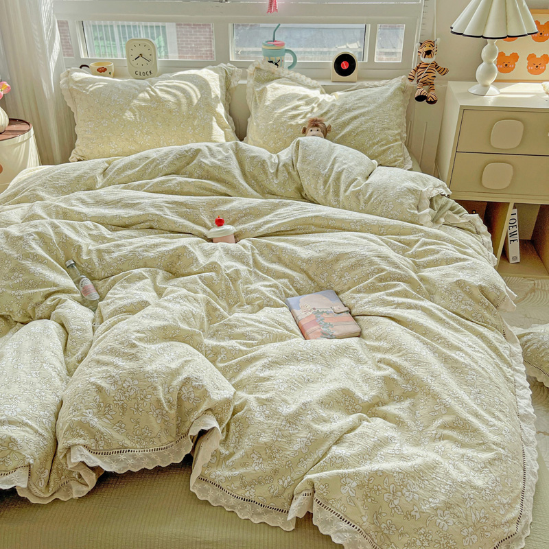 仟网汇 2025新款云感皱皱双层纱全棉花边四件套 春晓