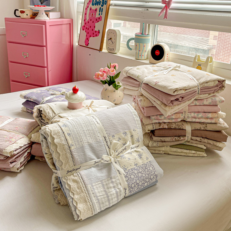 仟网汇 2025新款云感皱皱双层纱全棉花边四件套 组合图