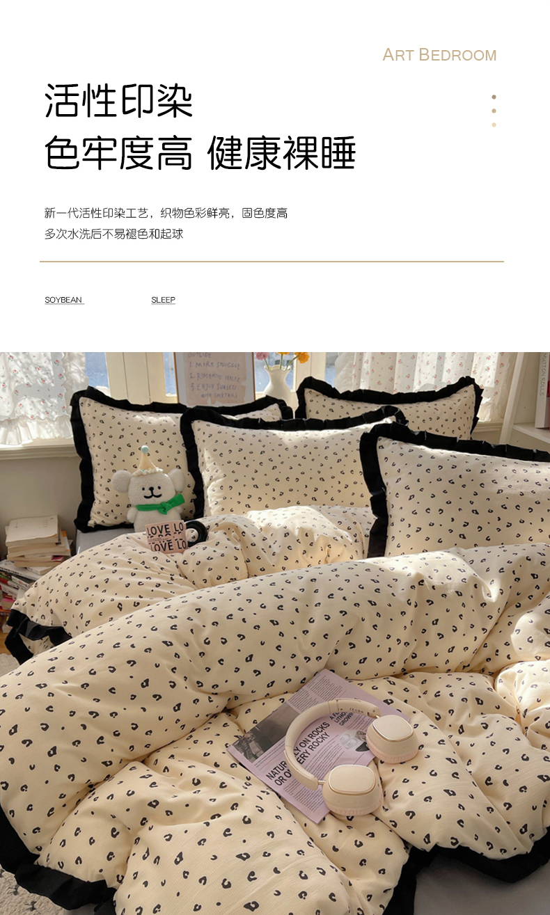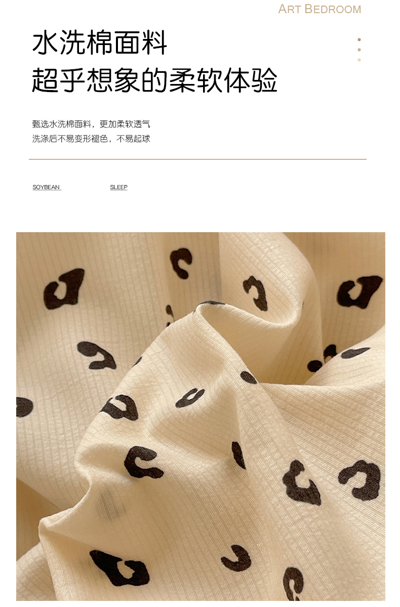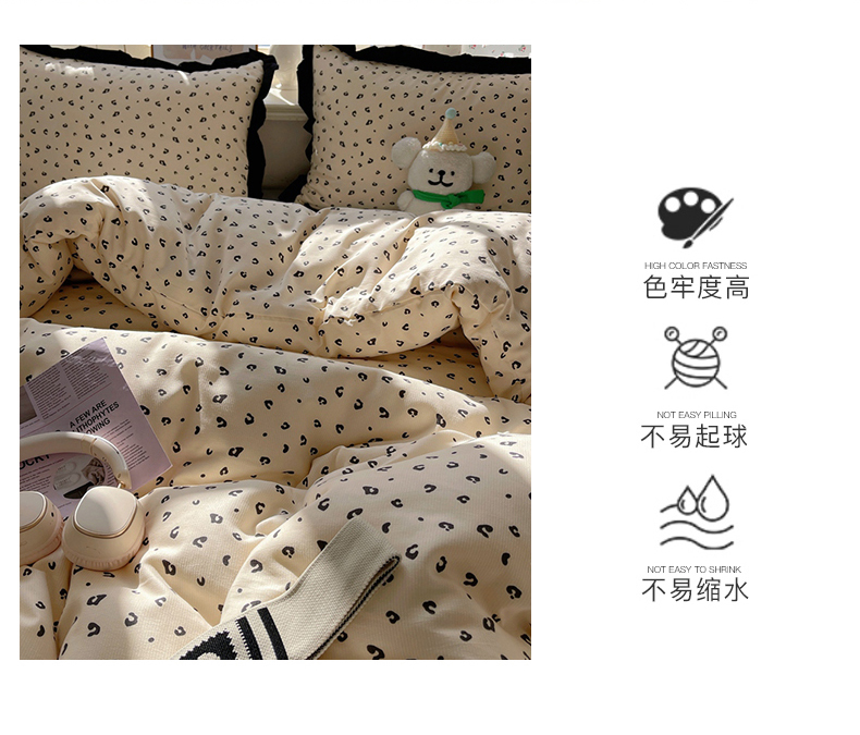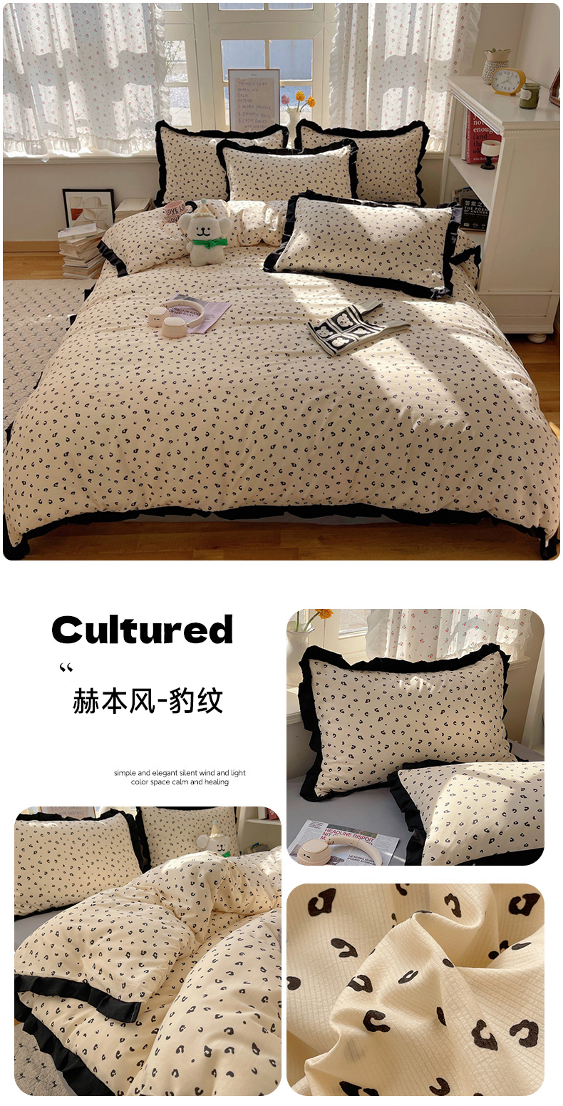 商品名称:红嘴企鹅 2025新款双层纱水洗棉赫本风四件套 赫本风-豹纹