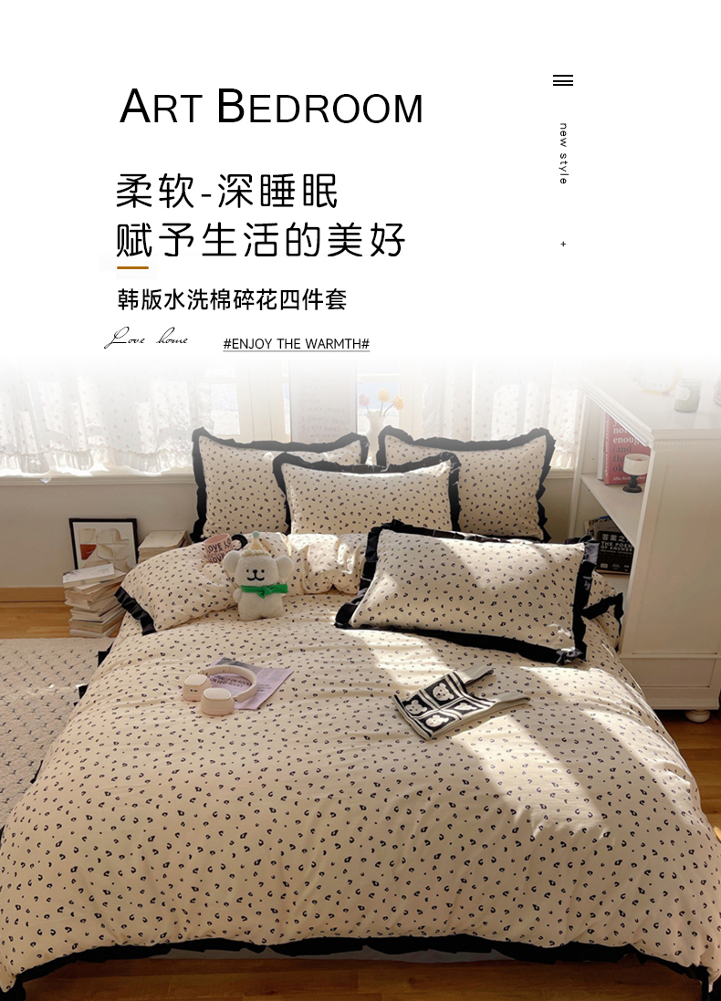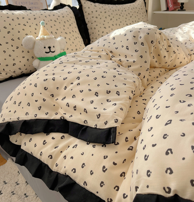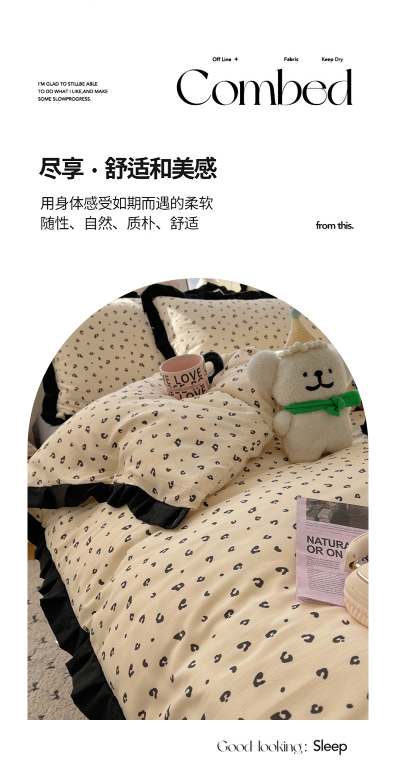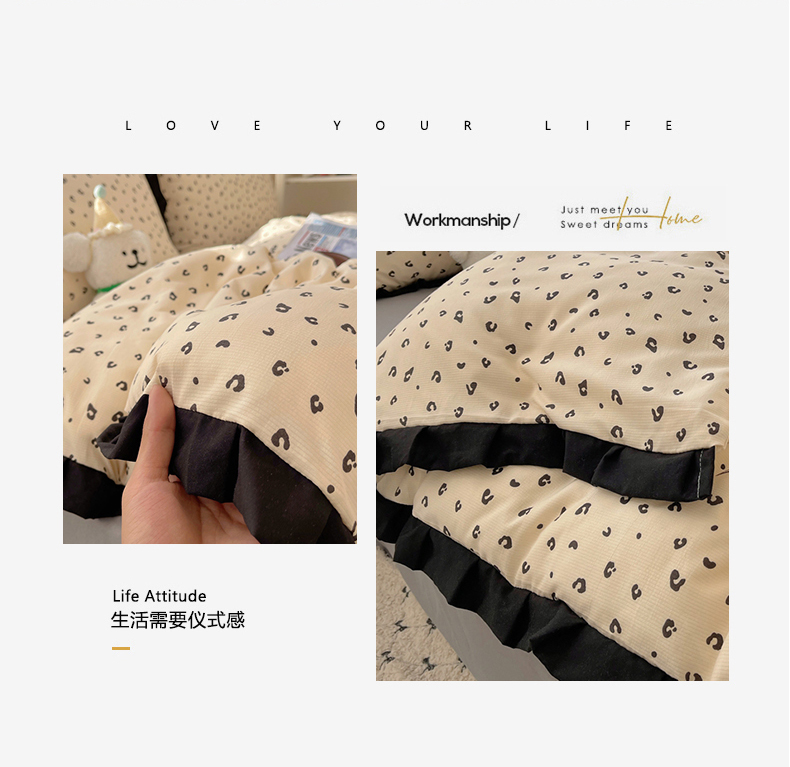 商品名称:红嘴企鹅 2025新款双层纱水洗棉赫本风四件套 赫本风-豹纹
