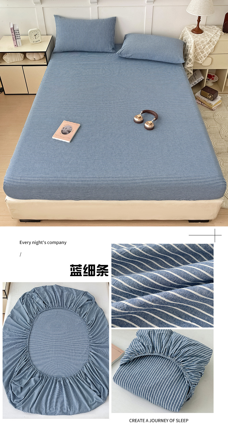 商品名称:2025新款全棉水洗棉套件-单床笠 蓝细条