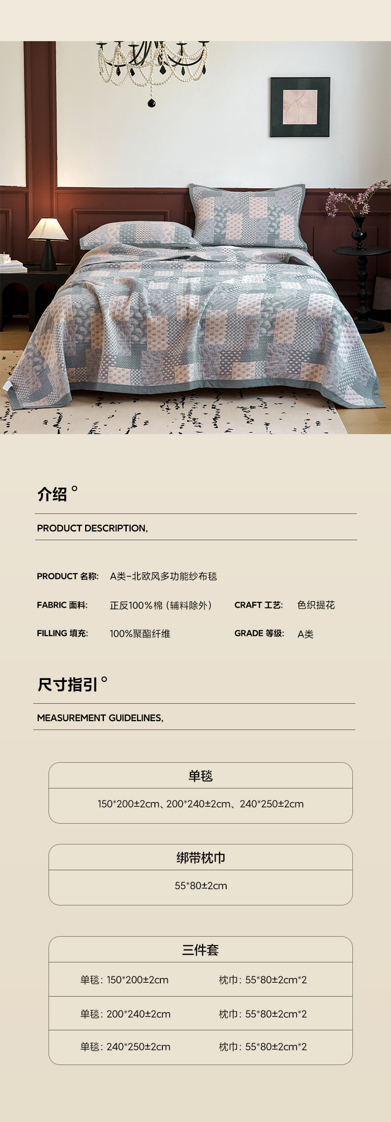 • 适用季节: 空调被/夏凉被