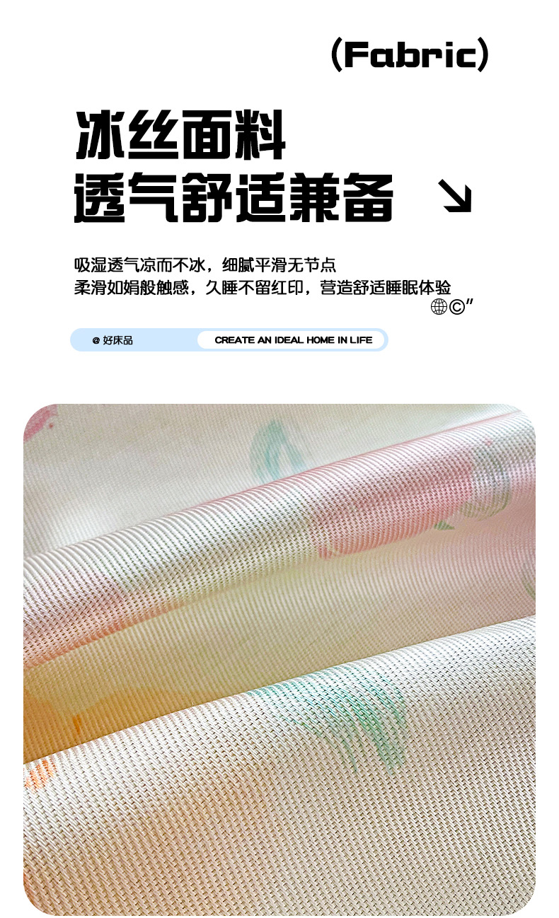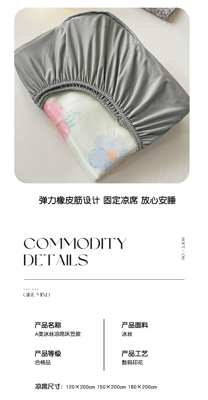 商品名称:金盛纺 2025新款A类数码印花冰丝席-床笠款 天女散花