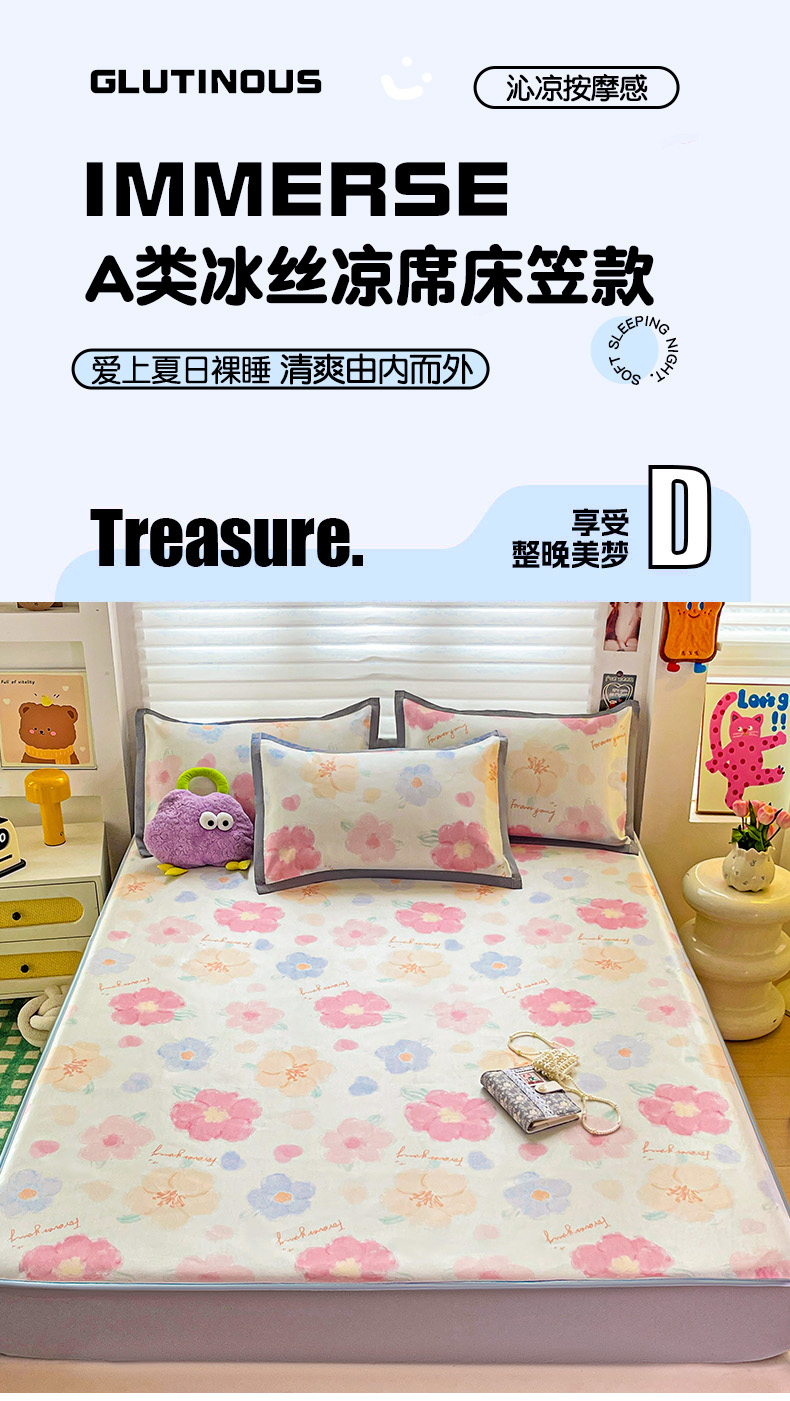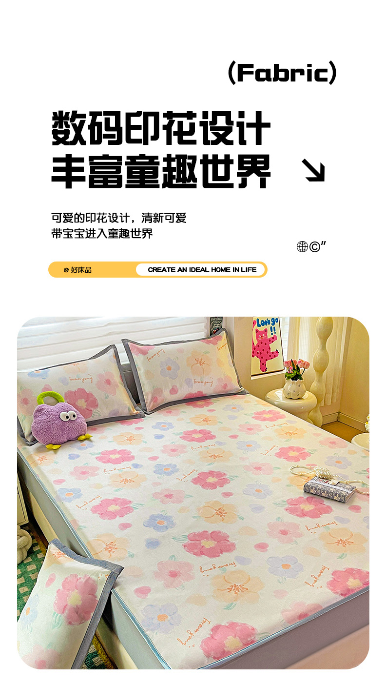(总)金盛纺 2025新款A类数码印花冰丝席-床笠款,蛋仔-粉,蛋仔-蓝,风铃,航海家,天女散花,甜心果,爱心,北极熊,春意,蝴蝶结,萌恐龙,趴趴熊,千鸟格-灰,爱心小熊,星辰-兰,幸运兔,绿意百合