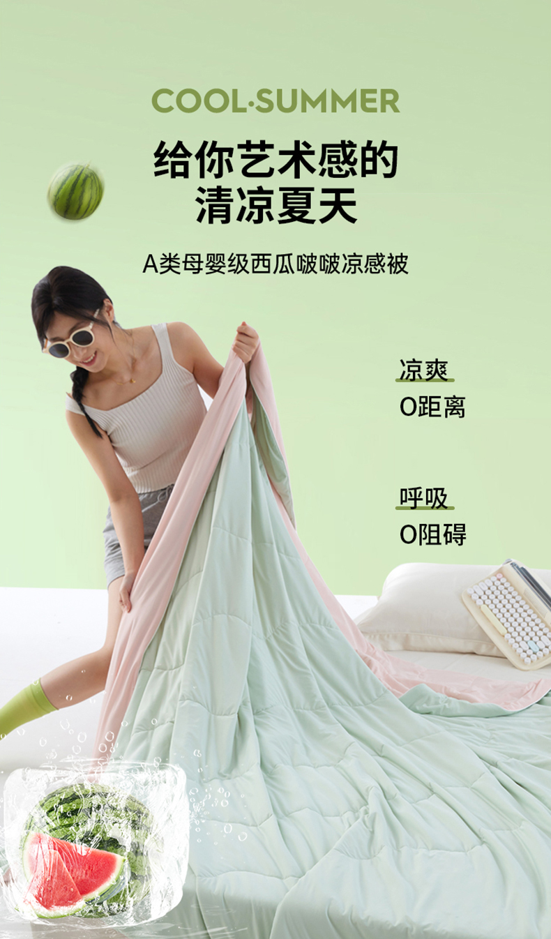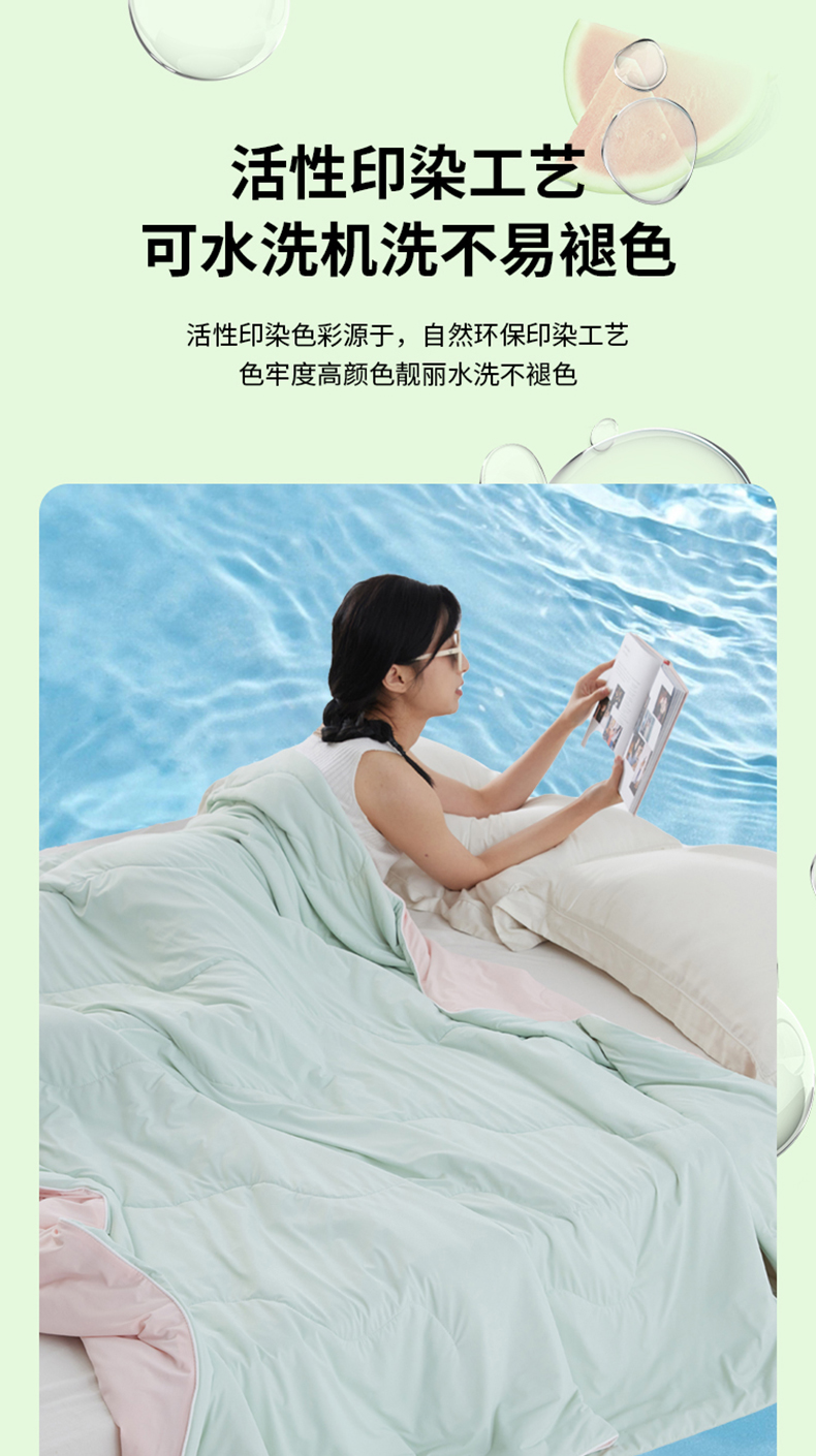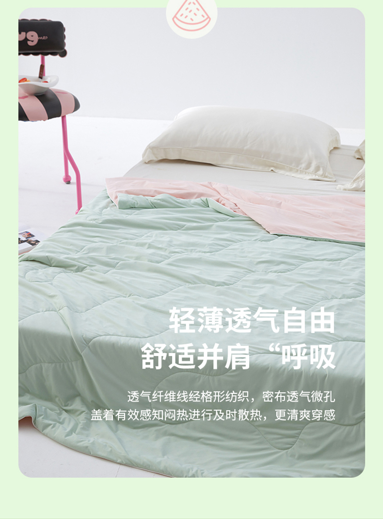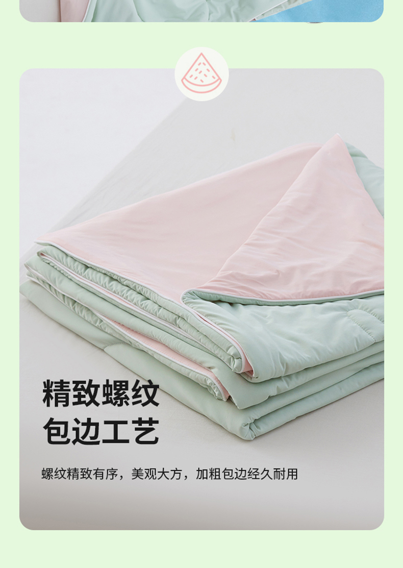 商品名称:2025春夏新款A类母婴级西瓜啵啵凉感被锦氨夏凉被空调被 星辰绿+海棠粉