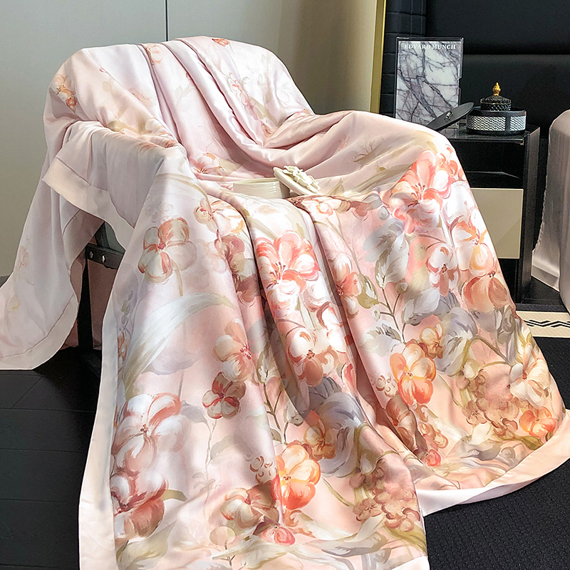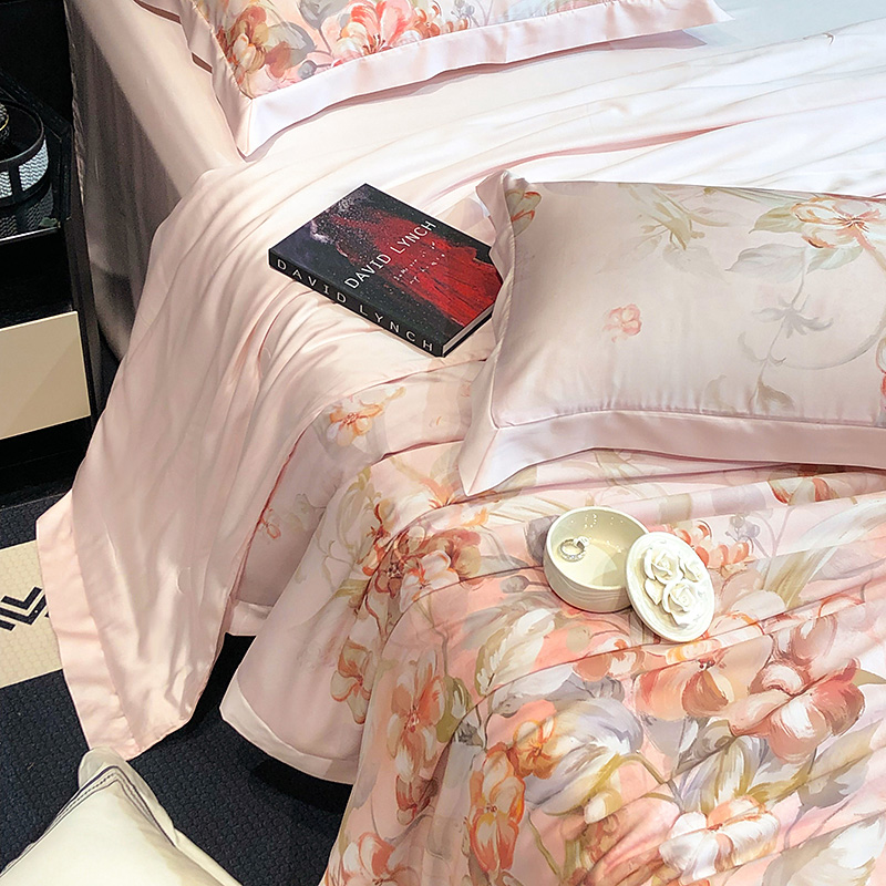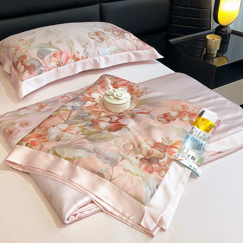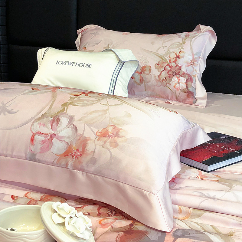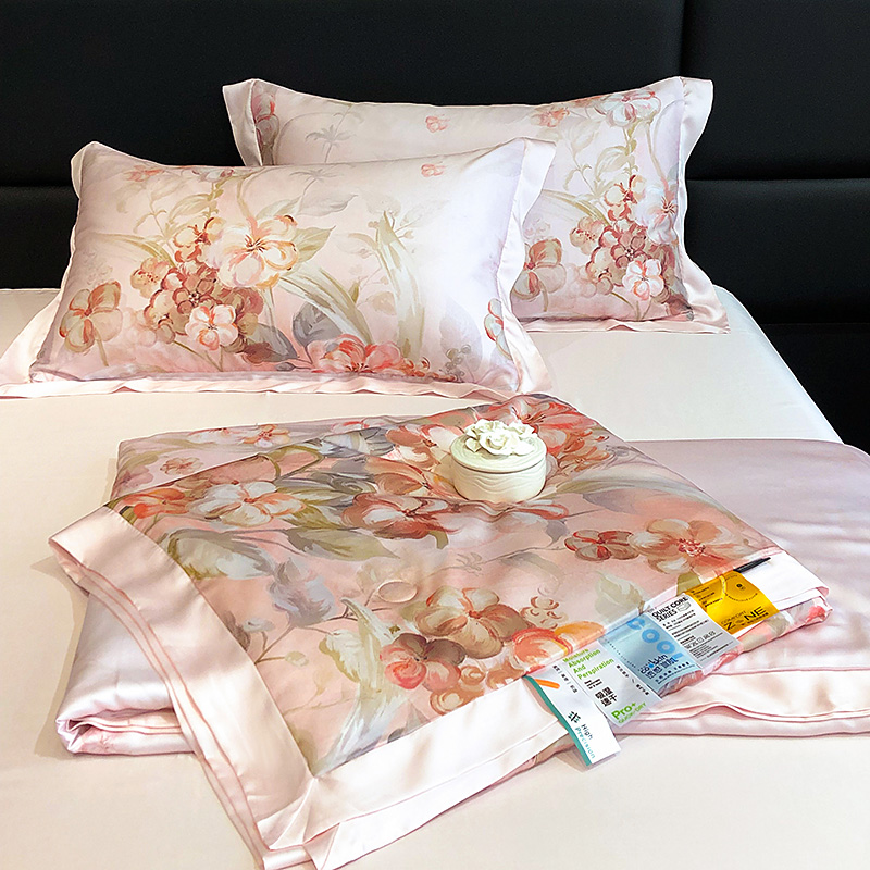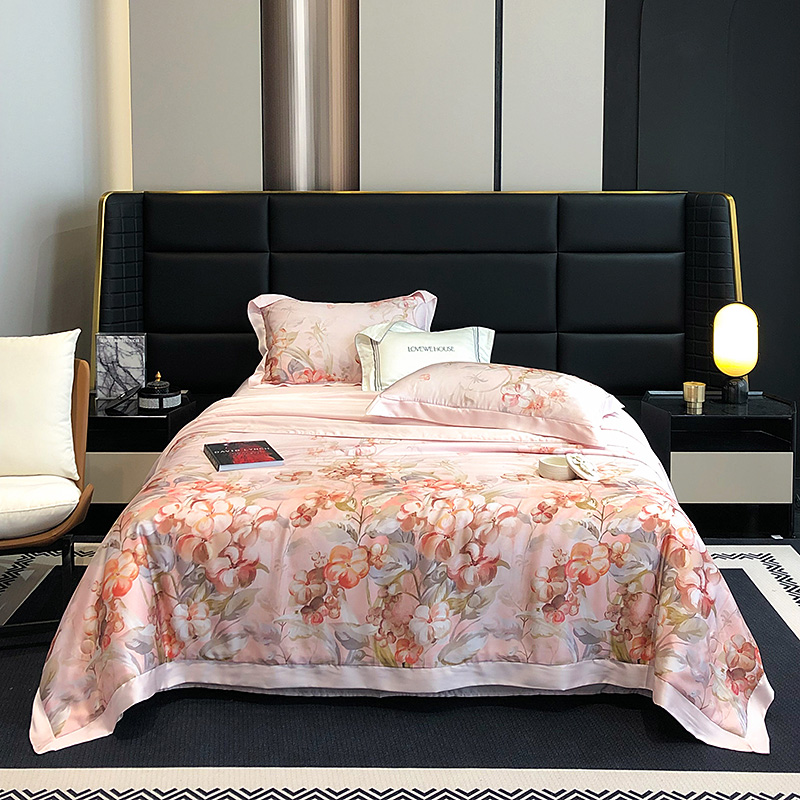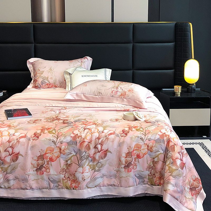 • 91家纺网 家纺一手货源 找家纺 若未家居 LOVEWE HOUSE 2025新款兰精天丝印花夏被及夏被四件套 花西子 粉(床单款+床盖款)
