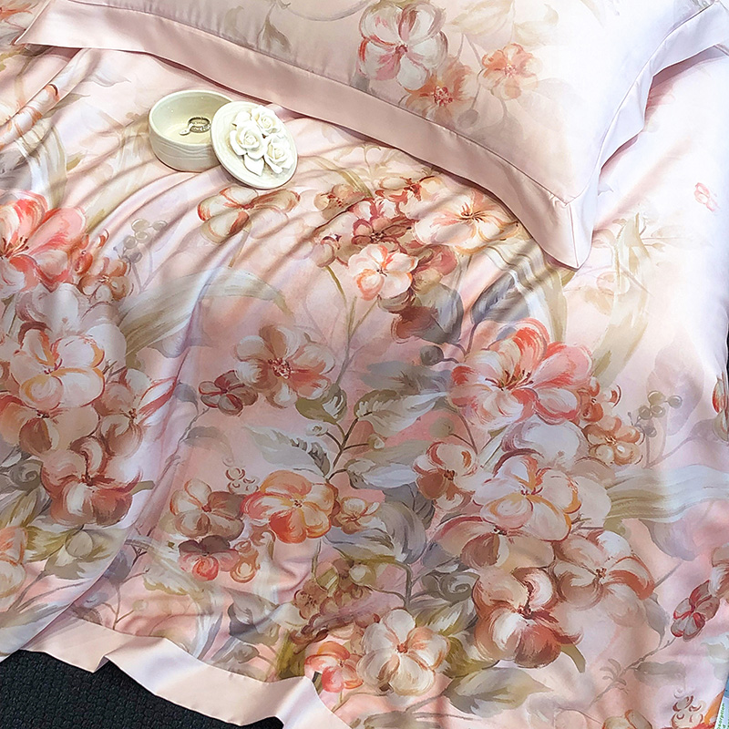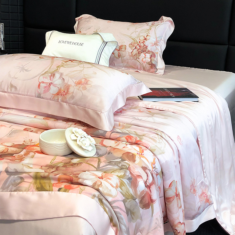 若未家居 LOVEWE HOUSE 2025新款兰精天丝印花夏被及夏被四件套 花西子 粉(床单款+床盖款)