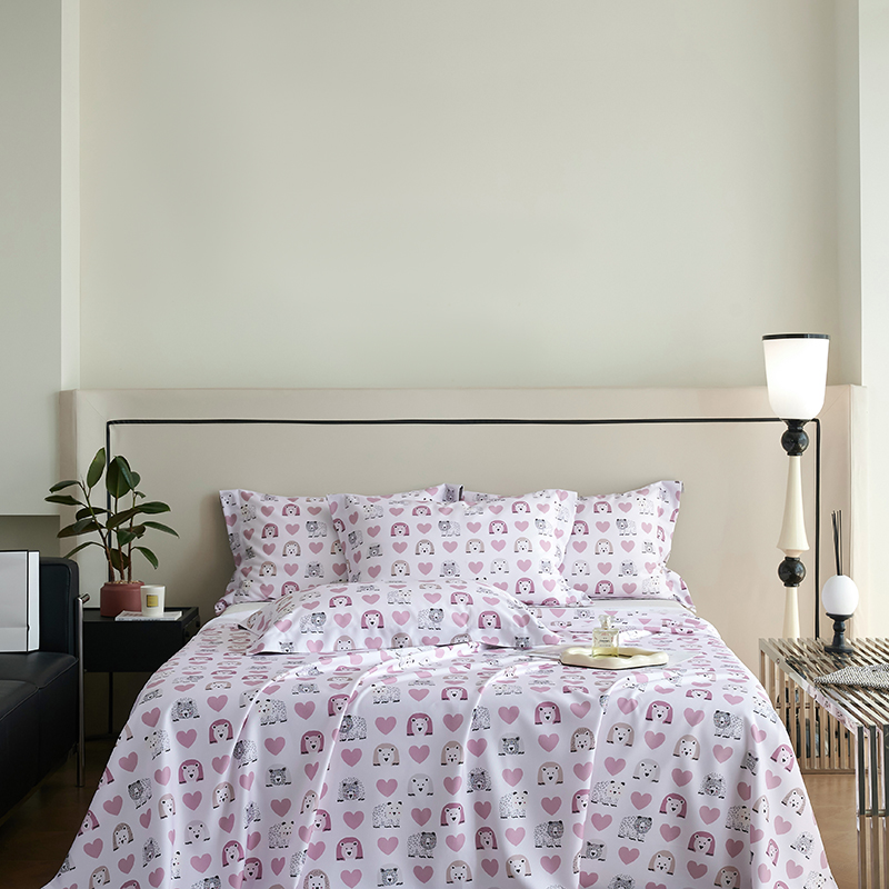 (总)时亿 2023新款100支长绒棉四件套心晴,心晴-粉,心晴-灰,心晴-蓝