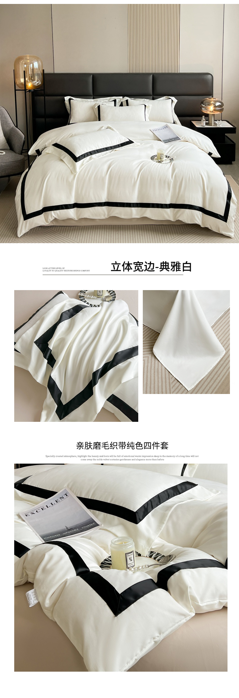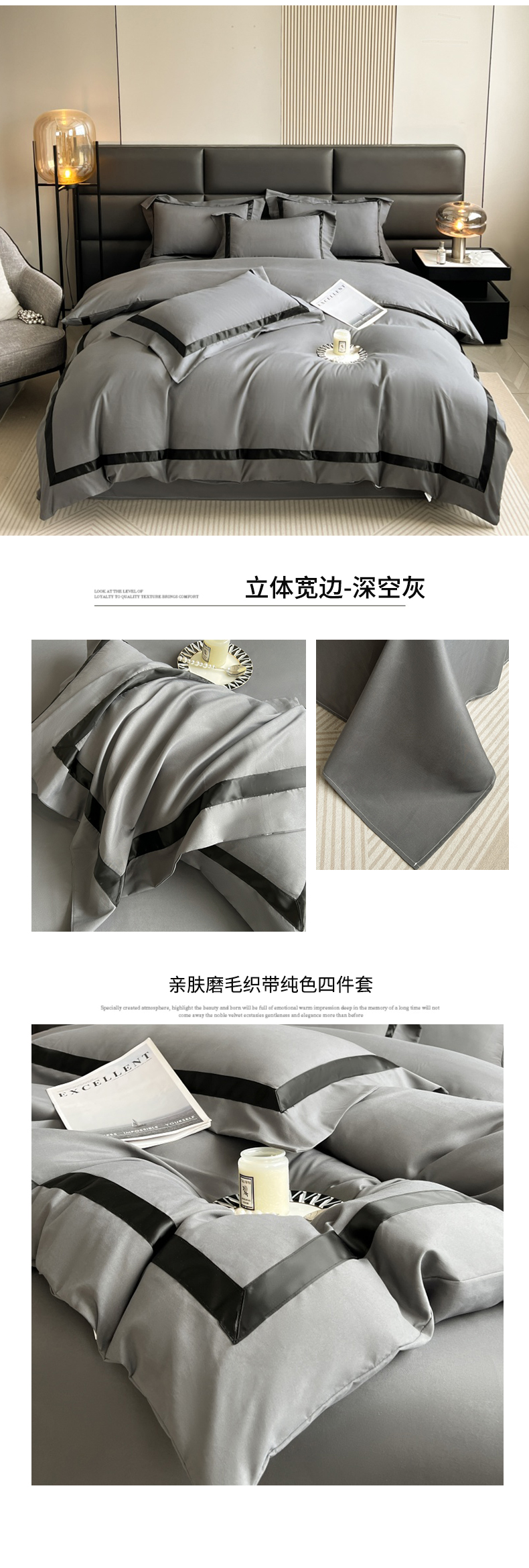 麒东家纺 2025年立体宽边工艺款纯色四件套 炫酷黑