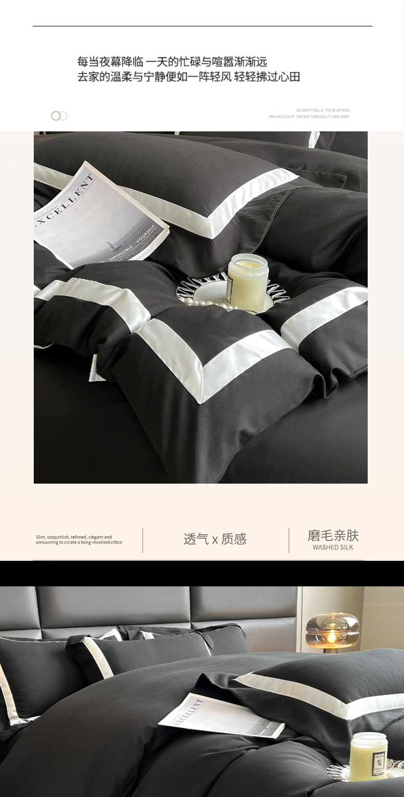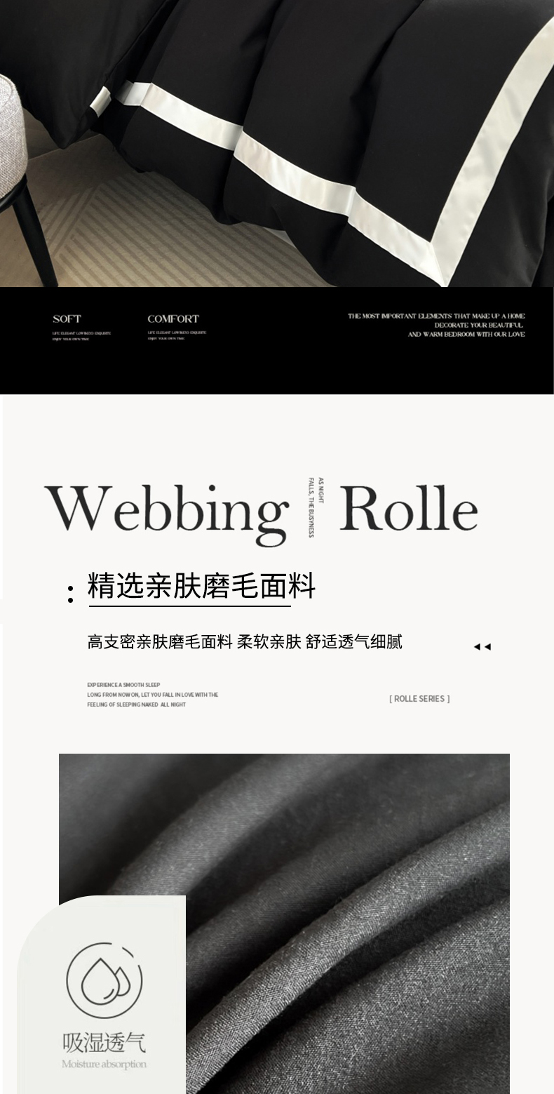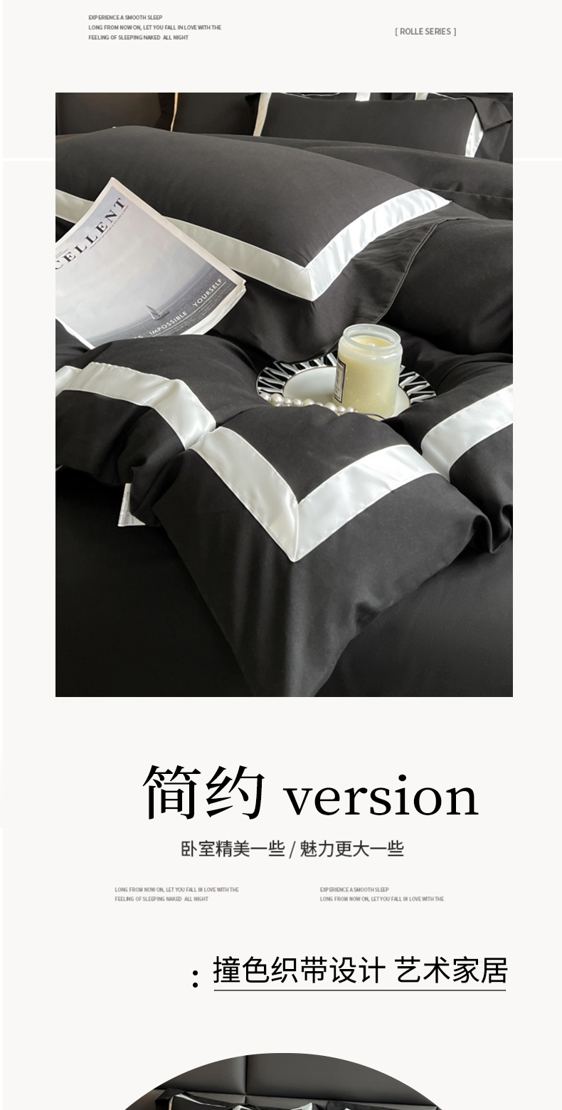 商品名称:麒东家纺 2025年立体宽边工艺款纯色四件套 炫酷黑