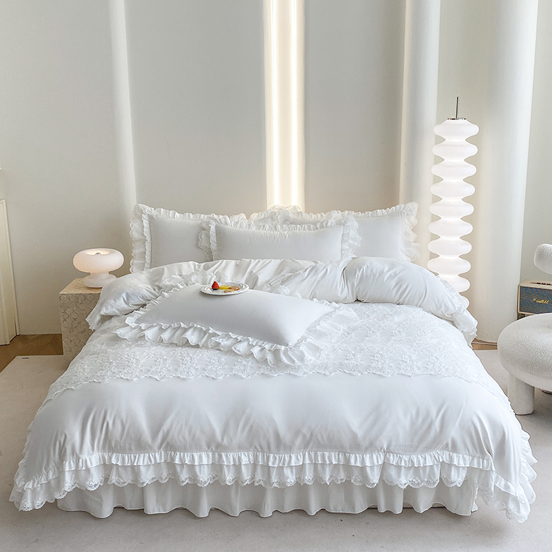 (总)乐卧2026雅韵蕾丝花边手工花卉夏被四件套有花版,海盐蓝有花版,黄油色有花版,兰花色有花版,麦芽灰有花版,甜白色有花版,樱花粉有花版