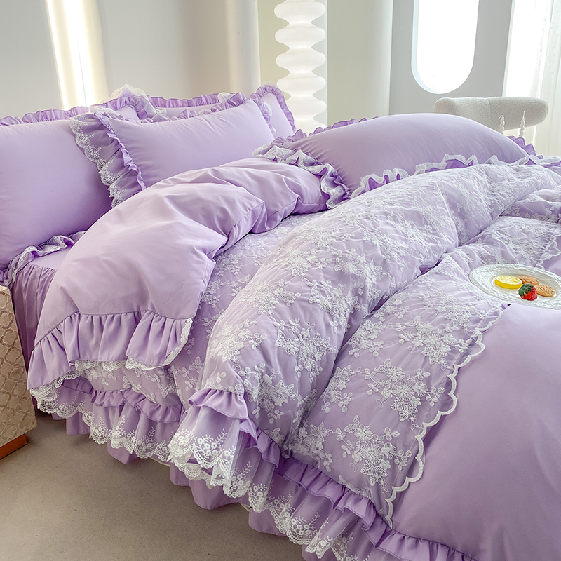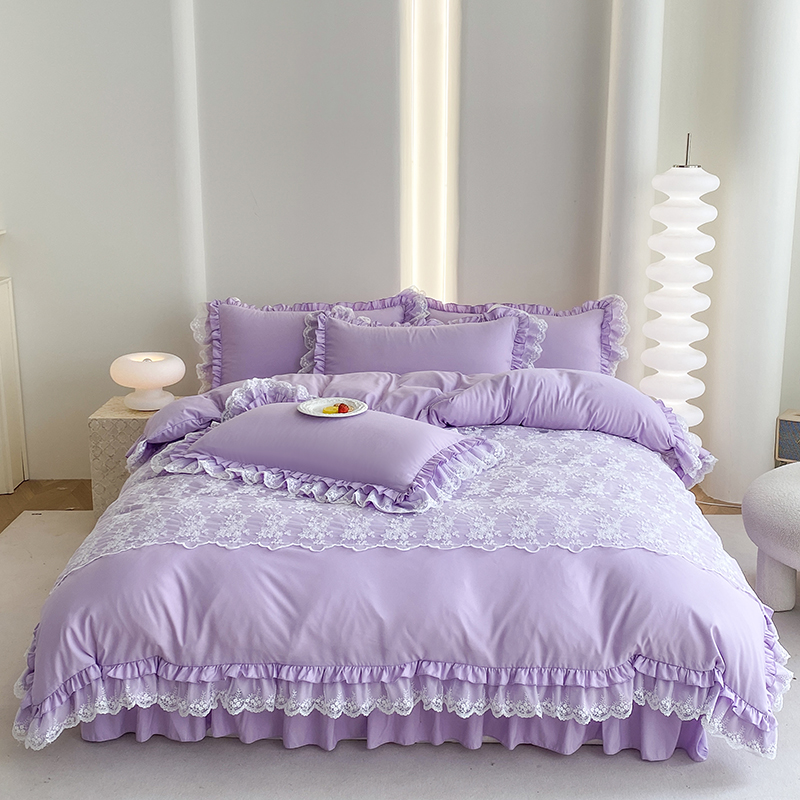 乐卧家居 2026新款韩国INS风简约时尚绗缝荷叶边夏被 紫色,紫色