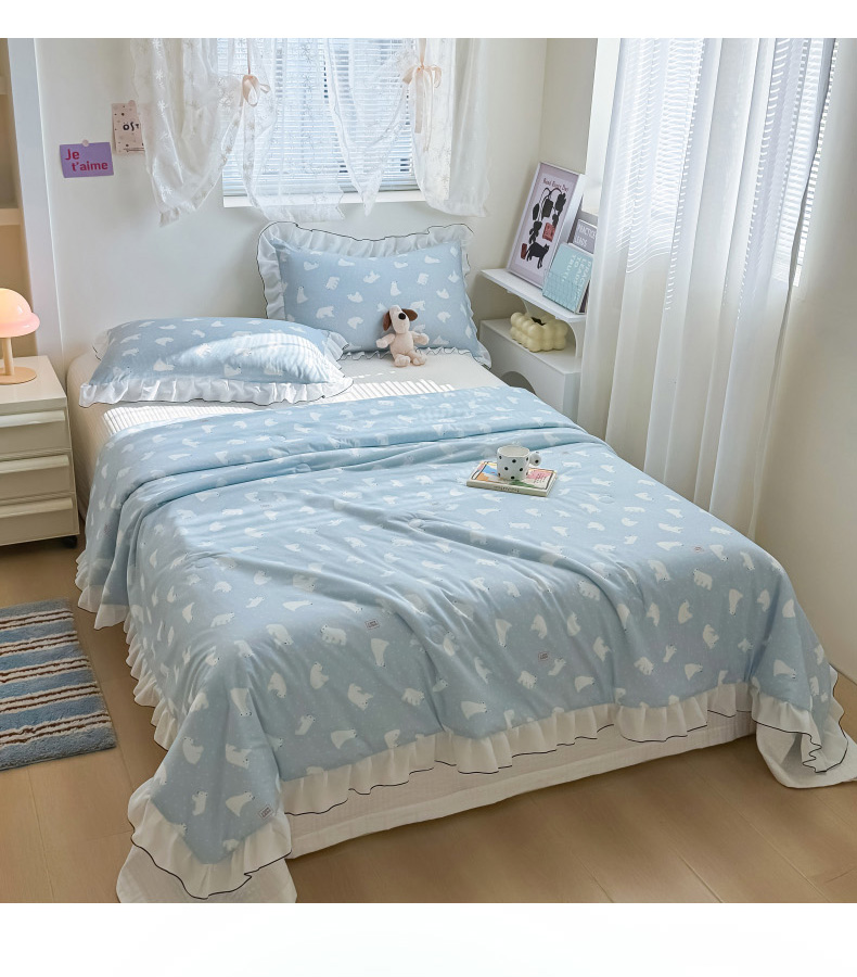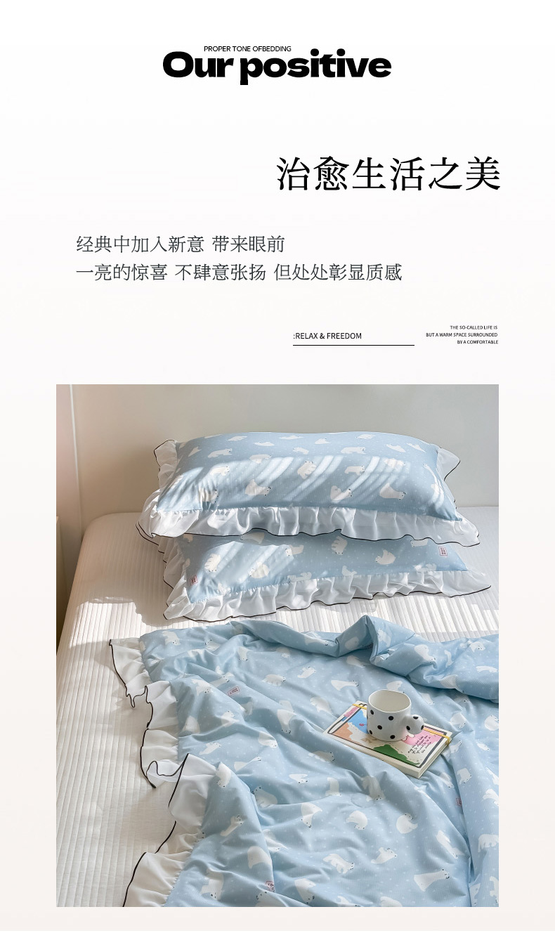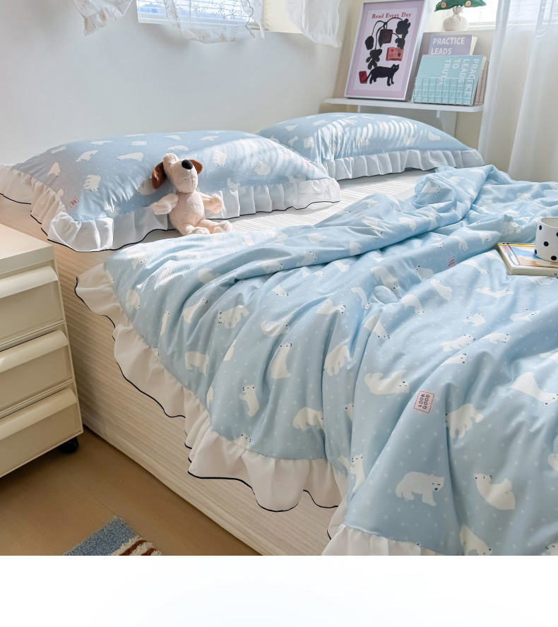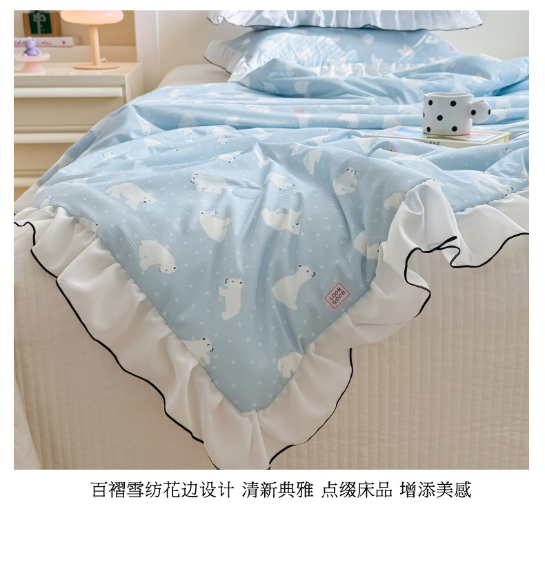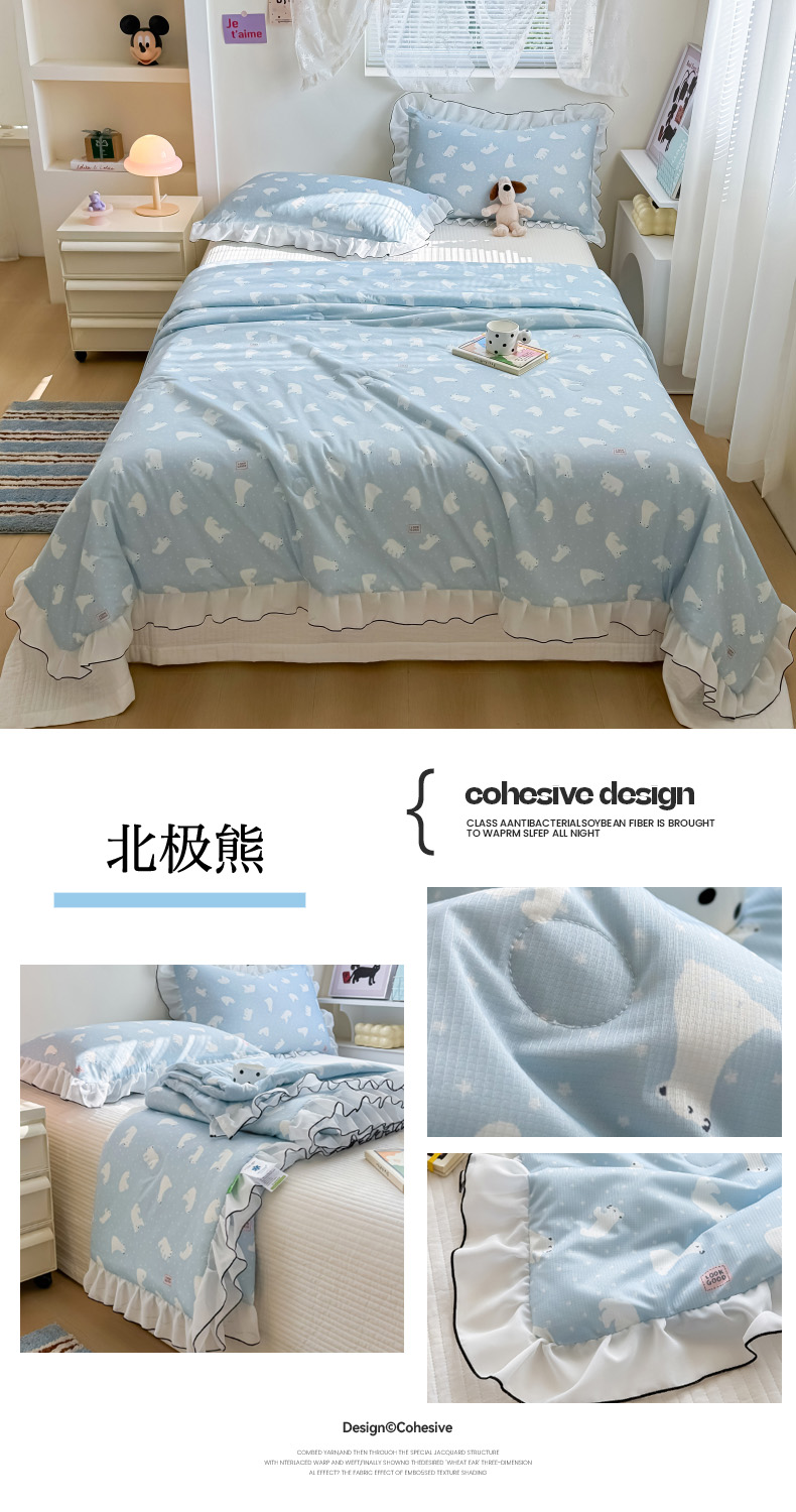 九花鹿2024新款A类大版碳光冰丝凉席床笠款三件套四件套,大版床笠款-熊宝贝