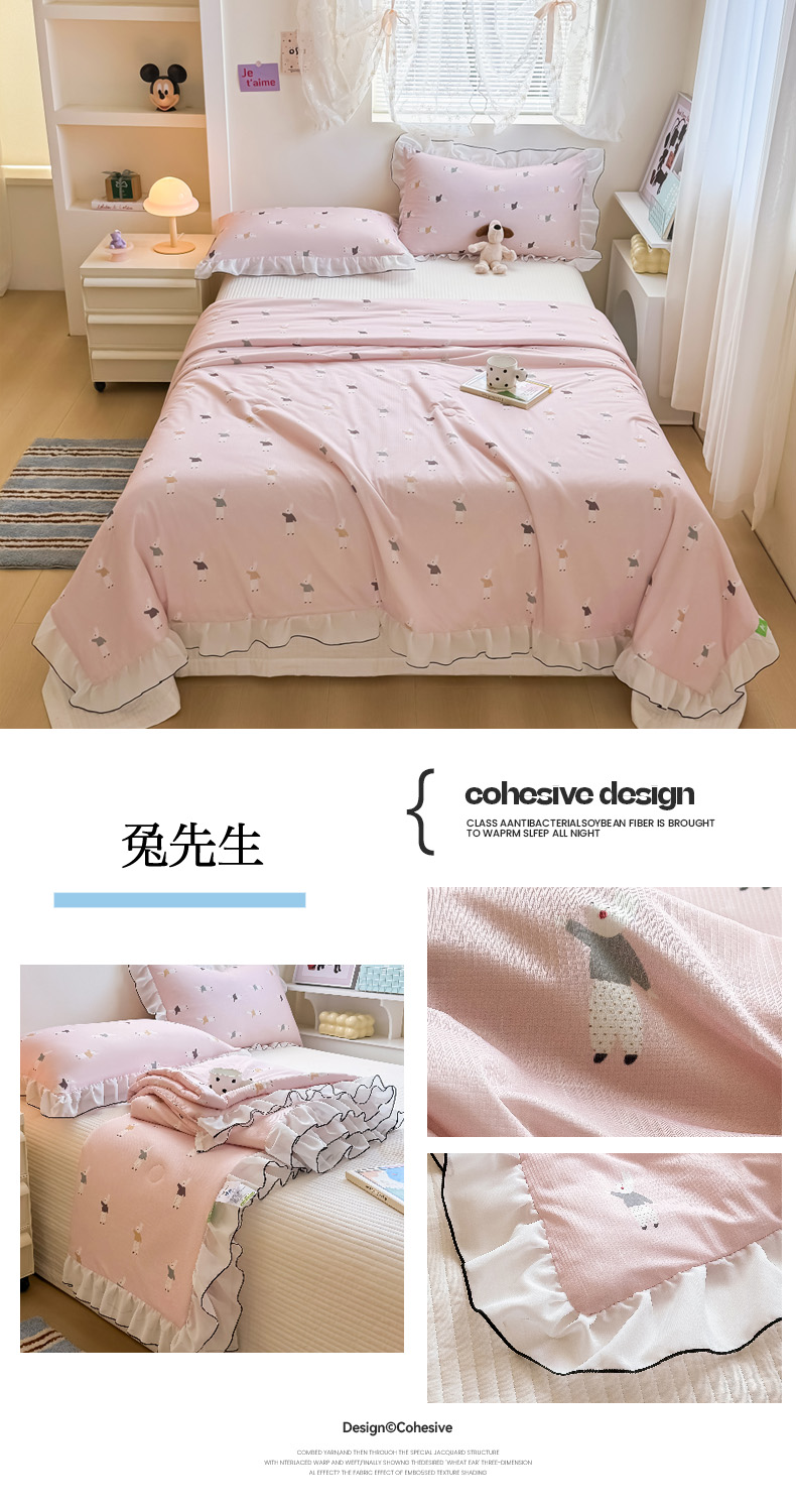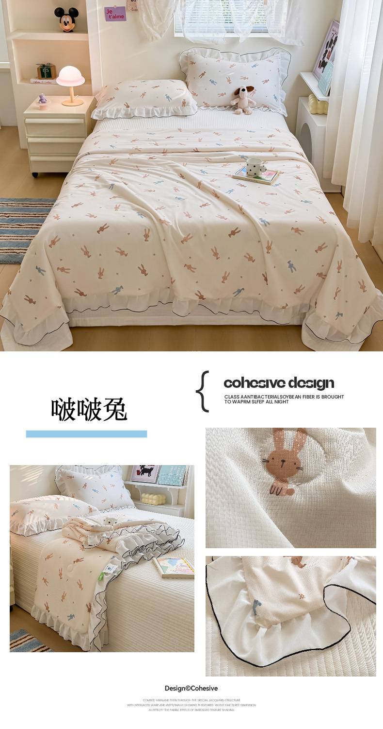 九花鹿2024新款A类大版碳光冰丝凉席床笠款三件套四件套,大版床笠款-萌萌兔