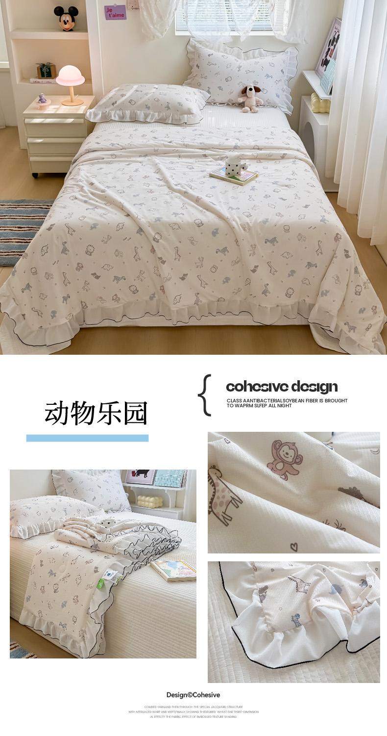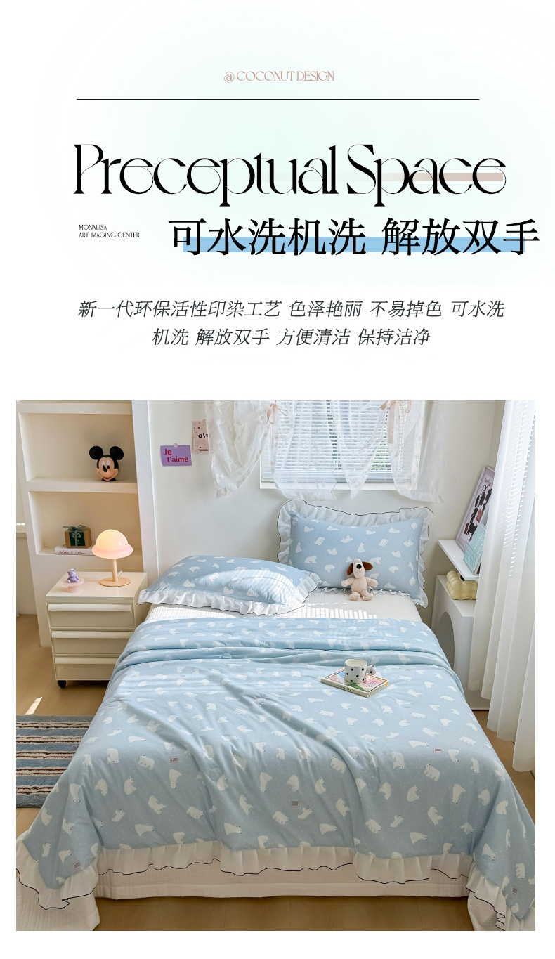 九花鹿2024新款A类大版碳光冰丝凉席床笠款三件套四件套,大版床笠款-派对小熊