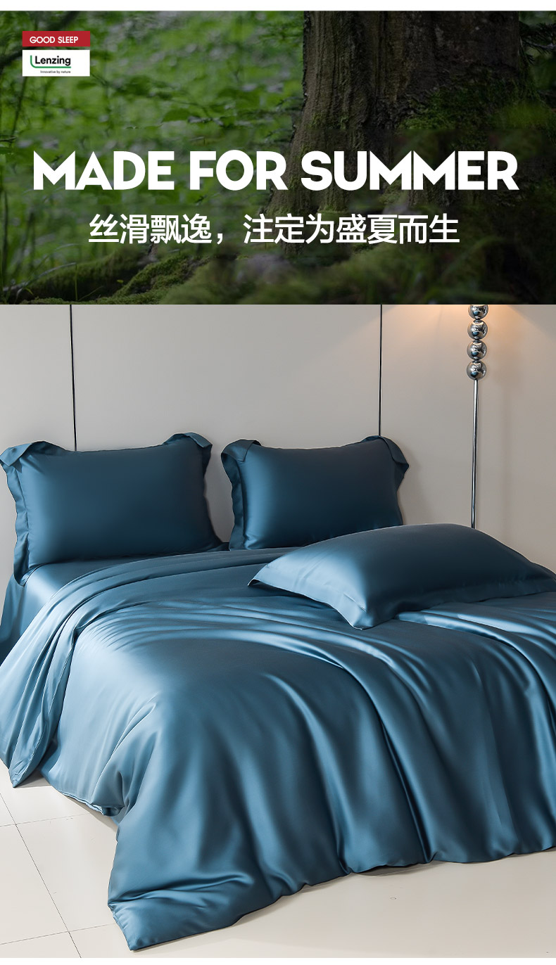 简爱家纺 2025亲肤舒适60s兰精天丝四件套【可授权】 燕领蓝