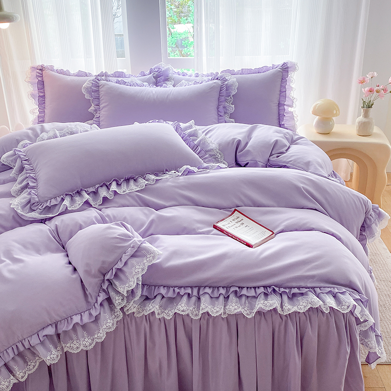 乐卧家居 2026新款韩国INS风简约时尚绗缝荷叶边夏被 紫色,紫色