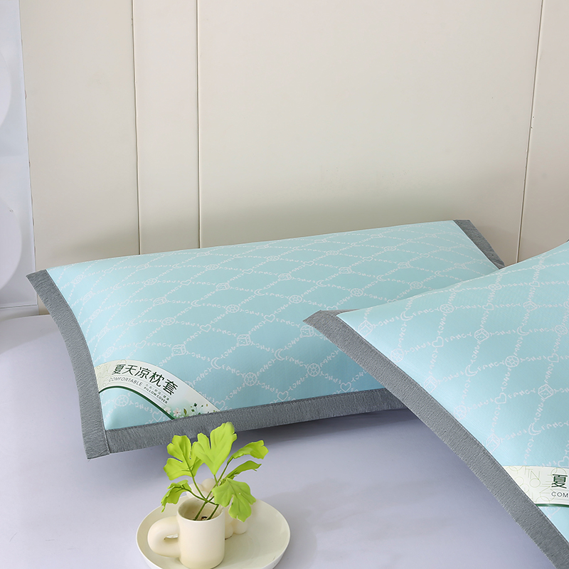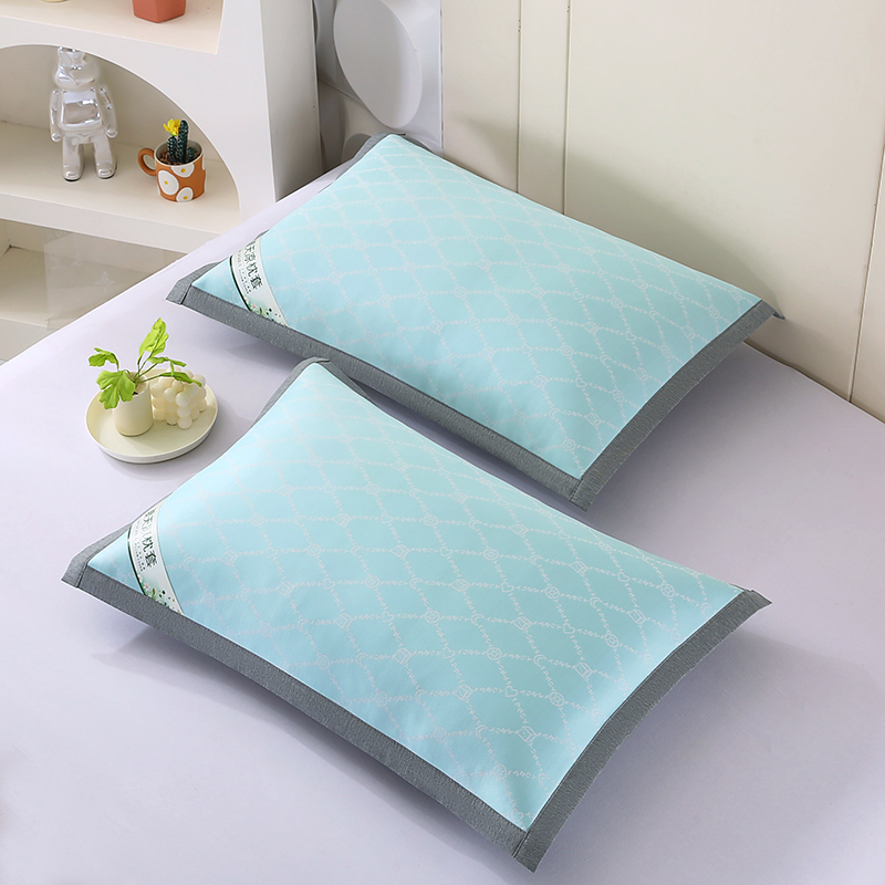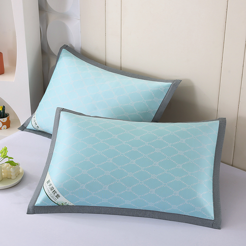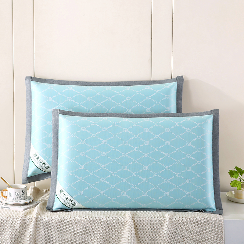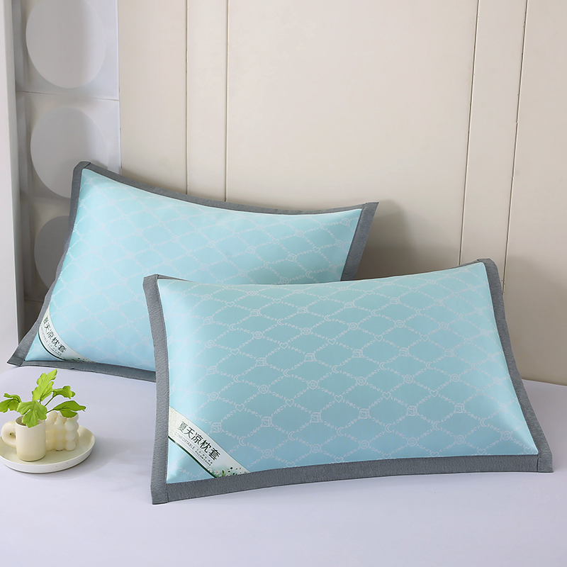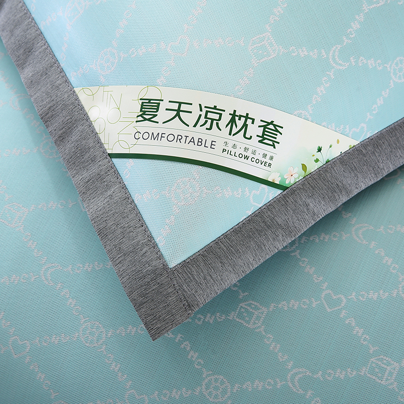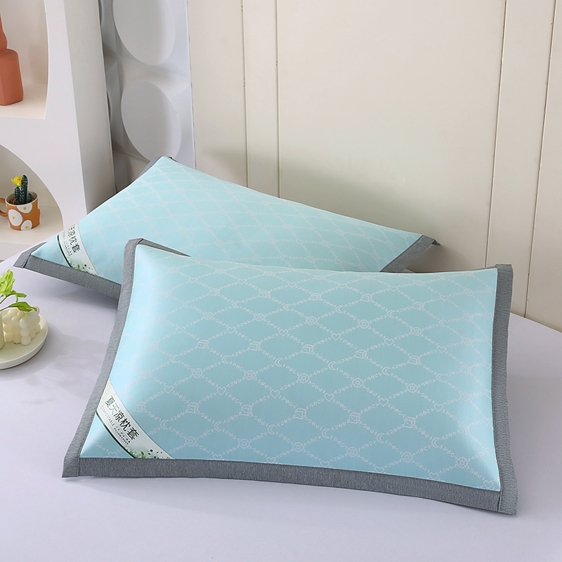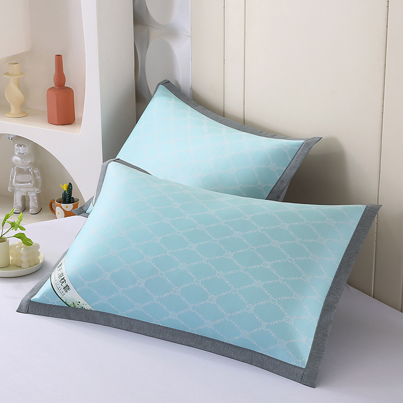 2025新款PE月亮爱心提花夏凉冰丝枕套 湖蓝