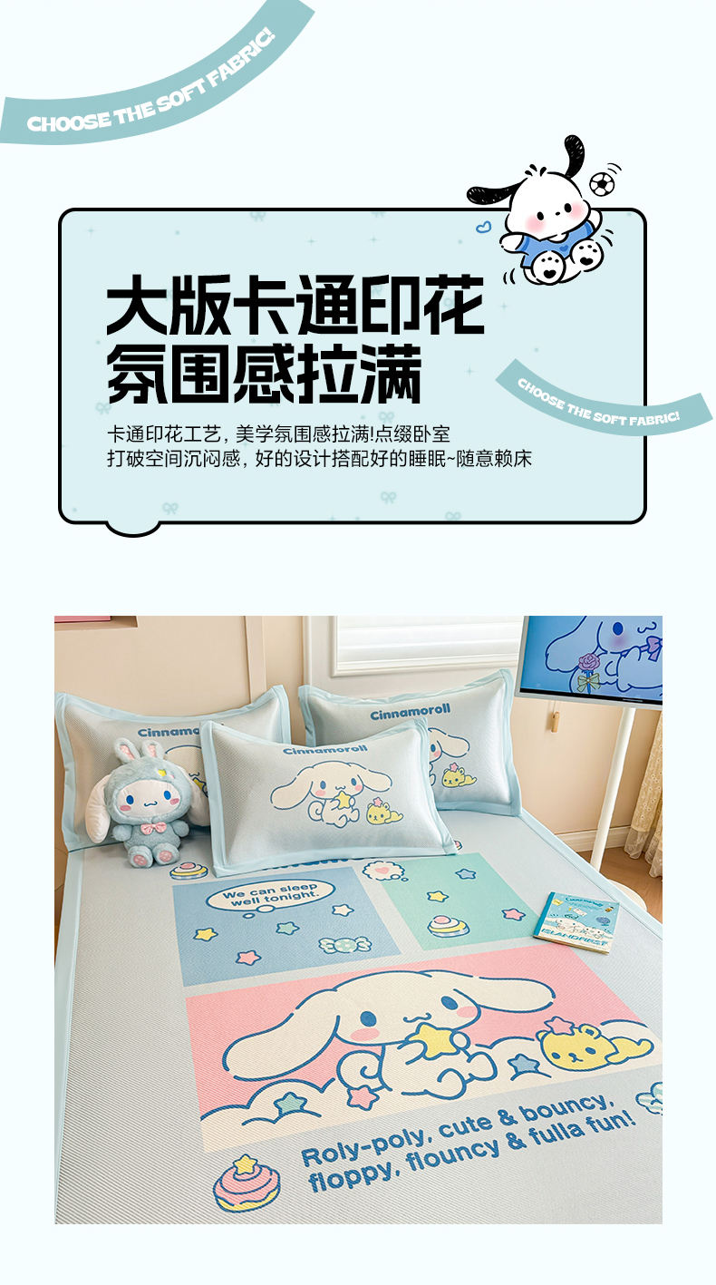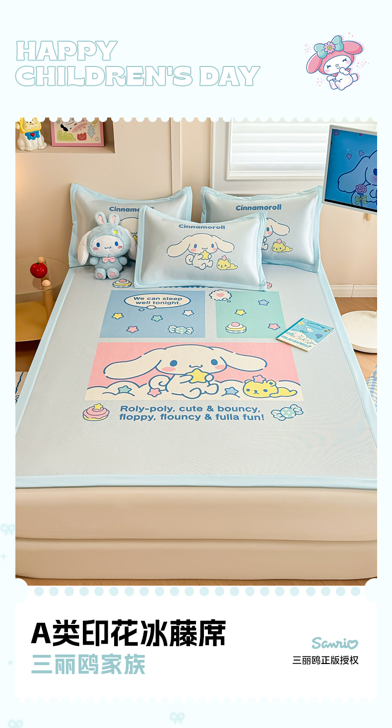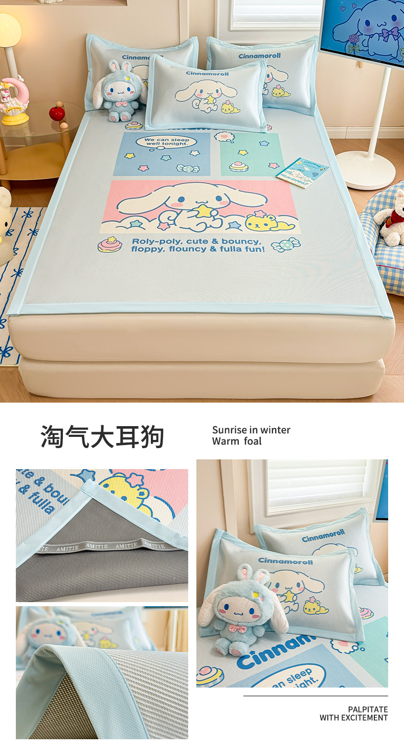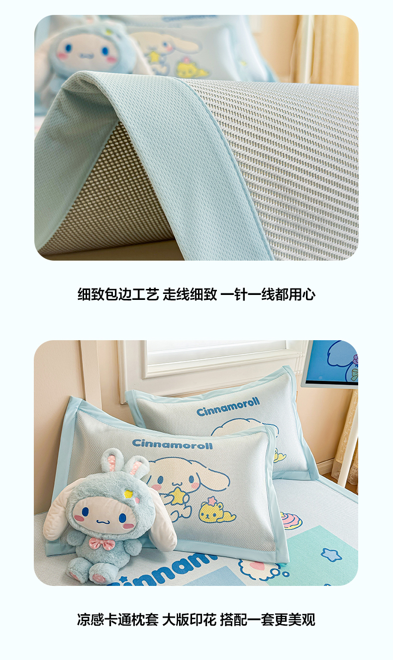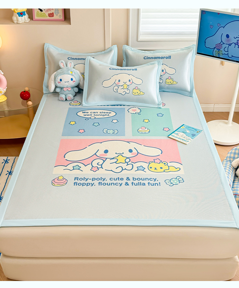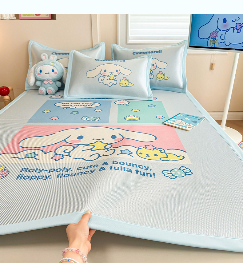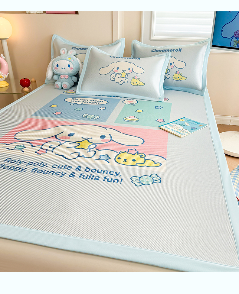 商品名称:蓝邻 2025春夏新款正版三丽鸥600D冰藤大版数码印花凉席-场景一 淘气大耳狗
