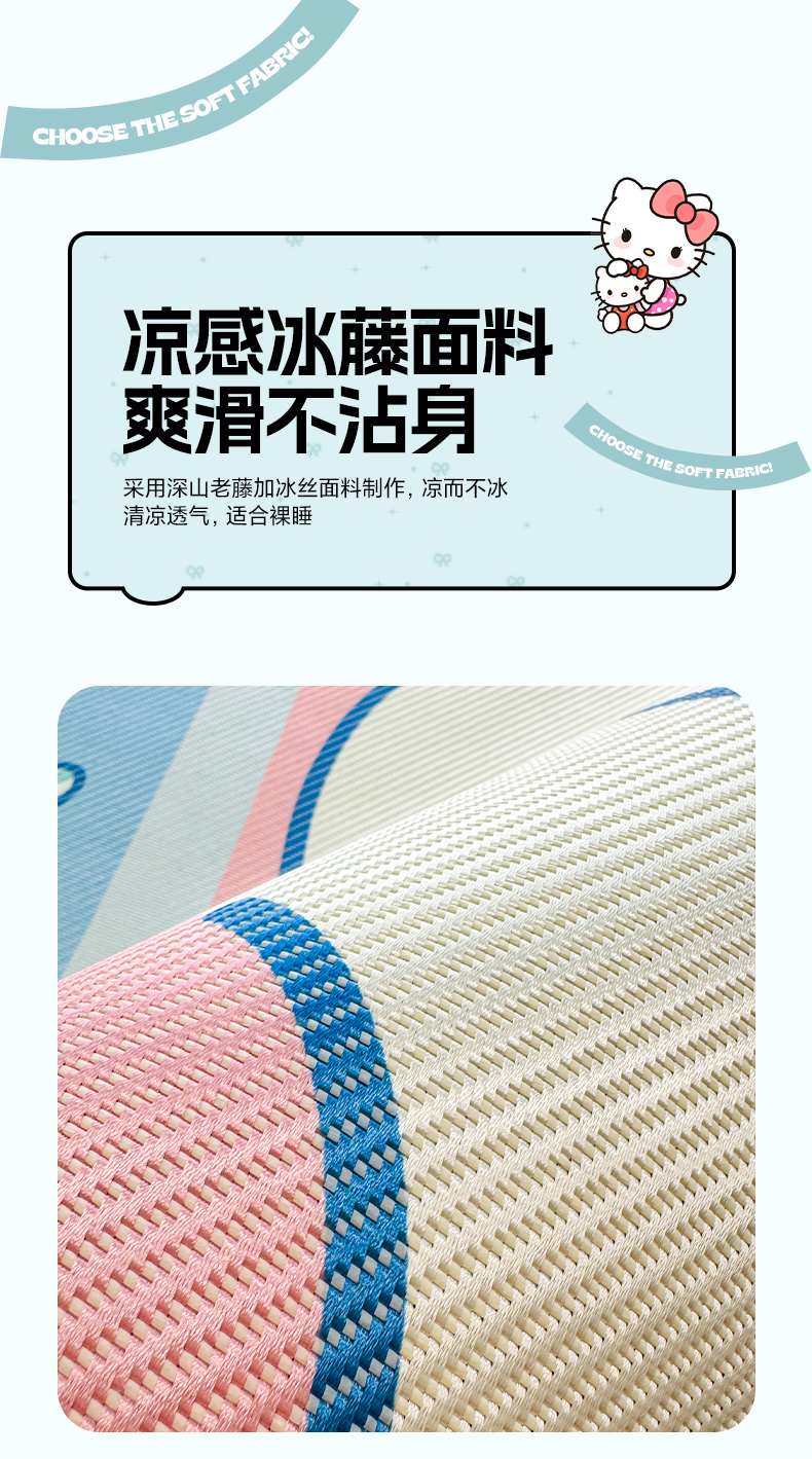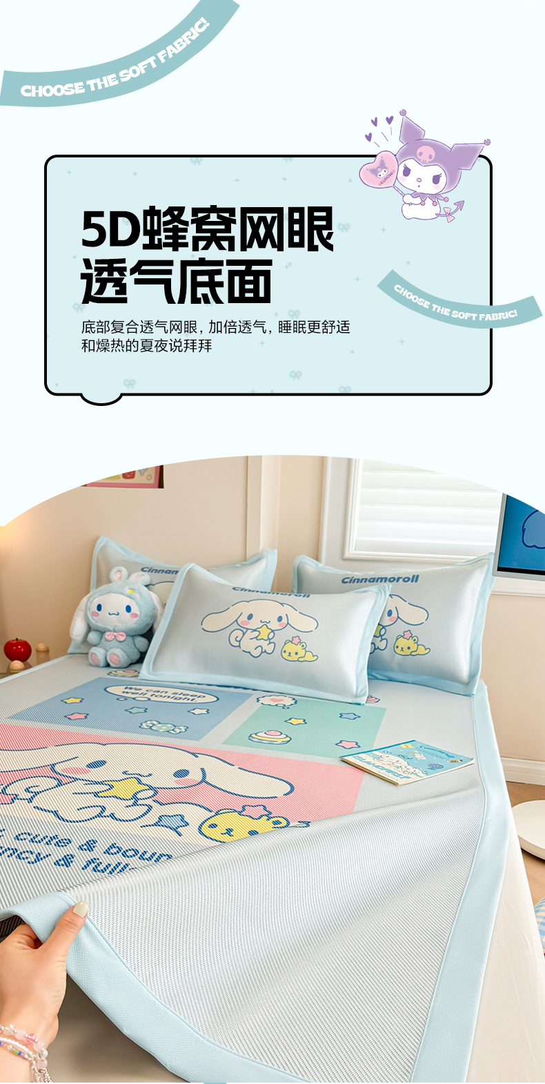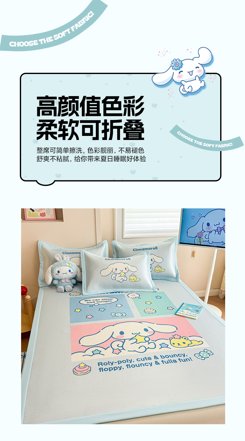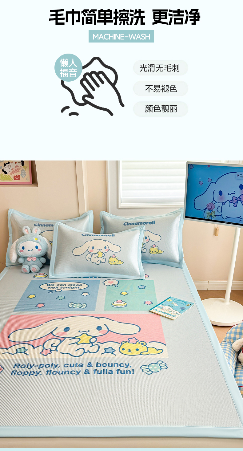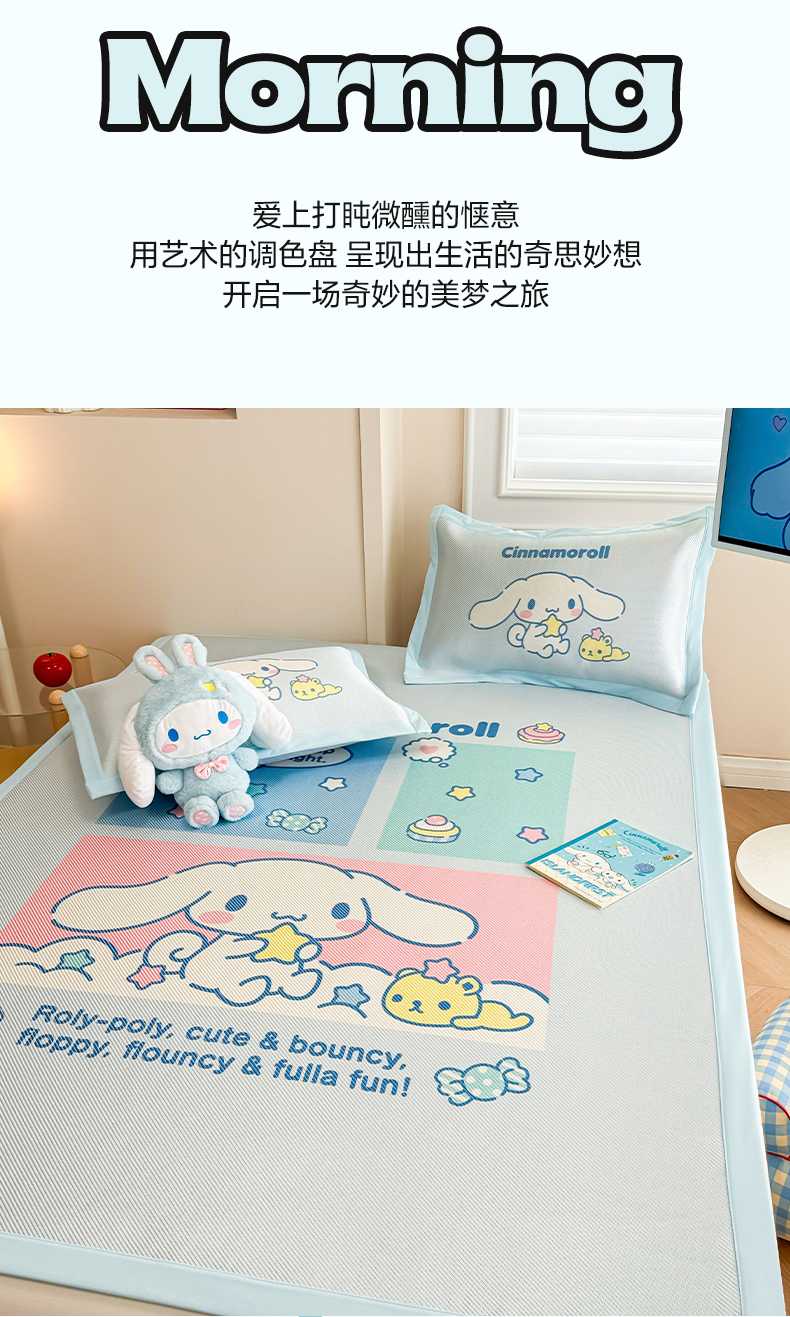 商品名称:蓝邻 2025春夏新款正版三丽鸥600D冰藤大版数码印花凉席-场景一 淘气大耳狗