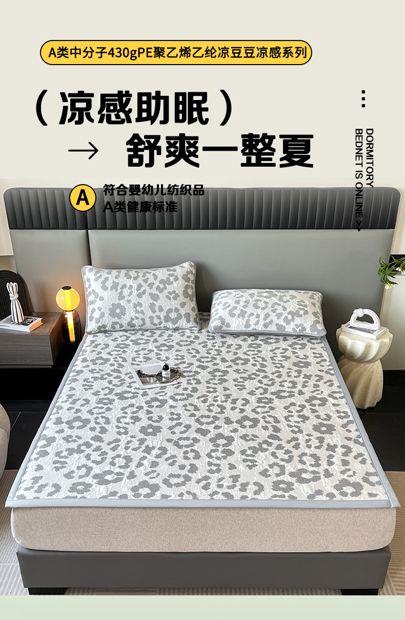 (总)子曰 2025春夏新款A类中分子430gPE聚乙烯乙纶凉豆豆凉席-床席款,小豹纹-灰,快乐熊-蓝,快乐熊-绿,小豹纹-粉,小鲸鱼,椰子树,英伦-灰