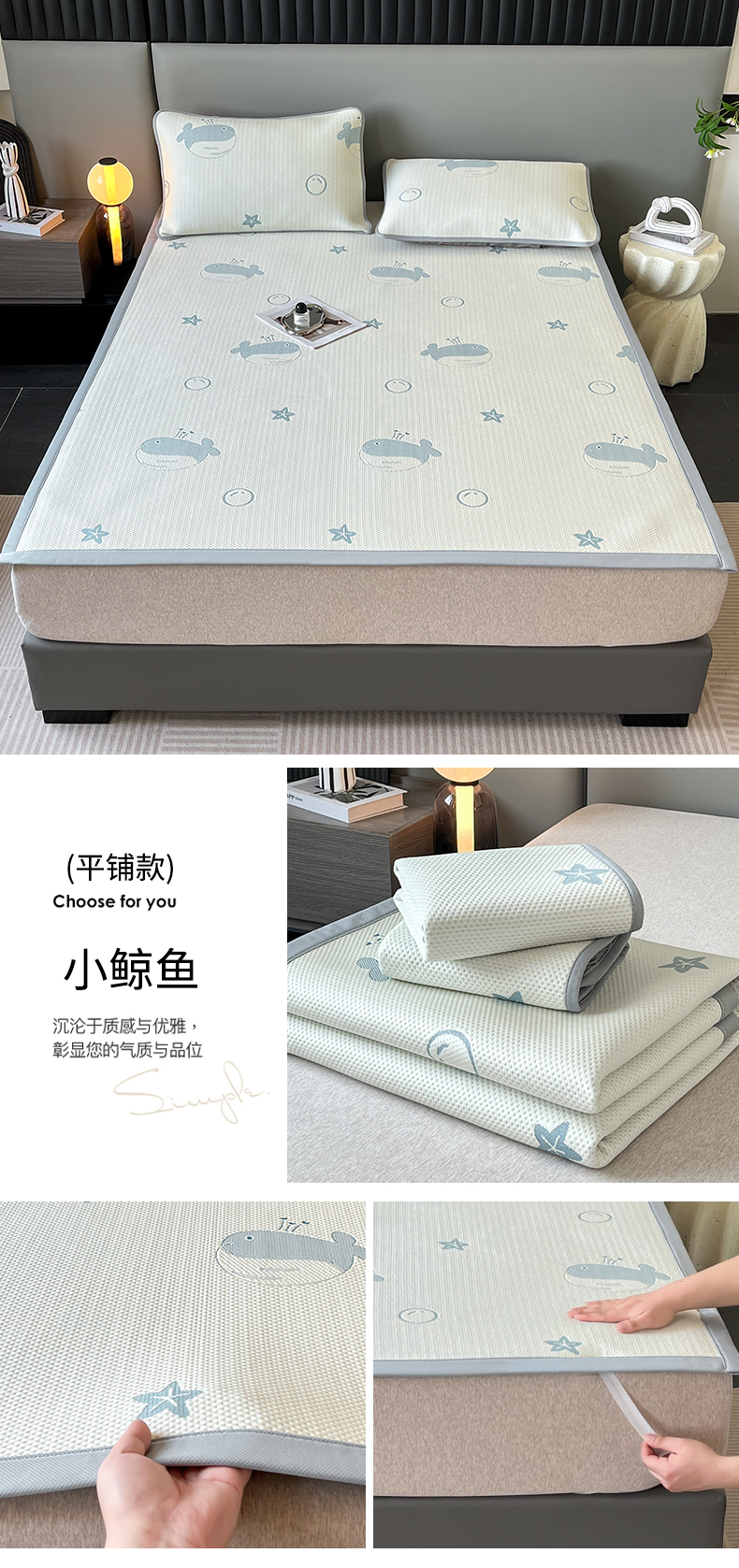 (总)子曰 2025春夏新款A类中分子430gPE聚乙烯乙纶凉豆豆凉席-床笠款,小豹纹-灰,快乐熊-蓝,快乐熊-绿,小豹纹-粉,小鲸鱼,椰子树,英伦-灰
