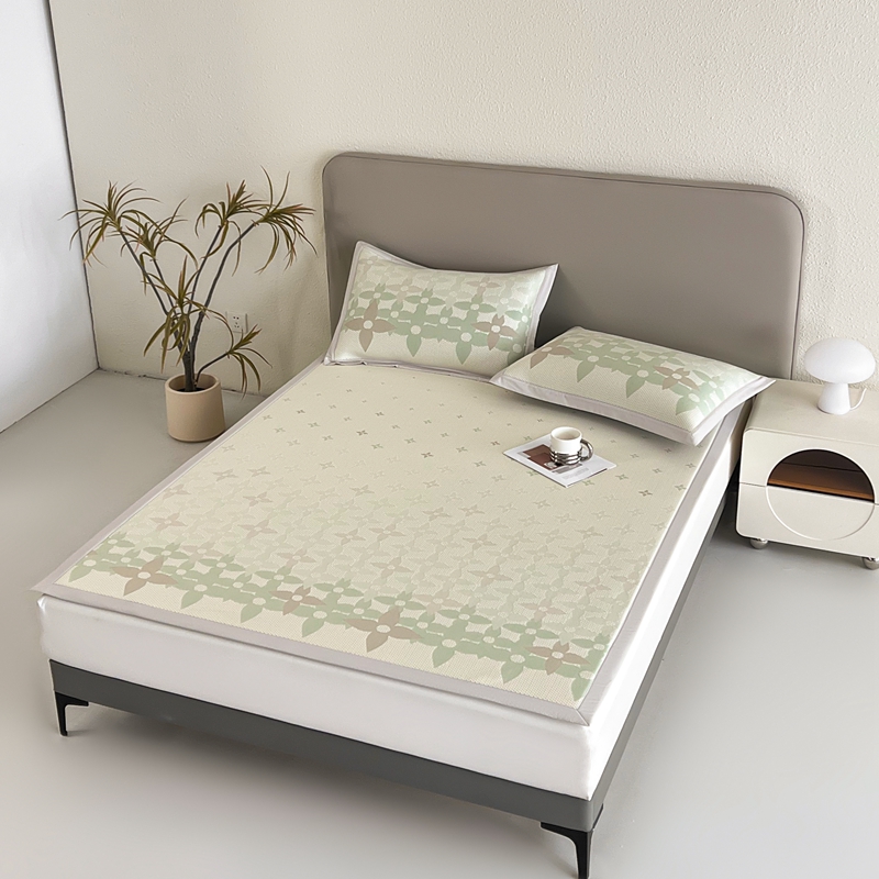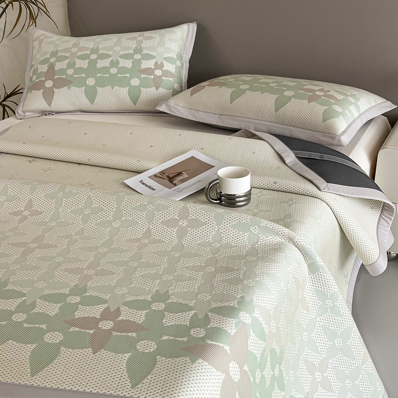 禧禾 2025新款PE高分子A类泡小豆色织提花提花凉席三件套-蒂梵朵 蒂梵朵-浅绿