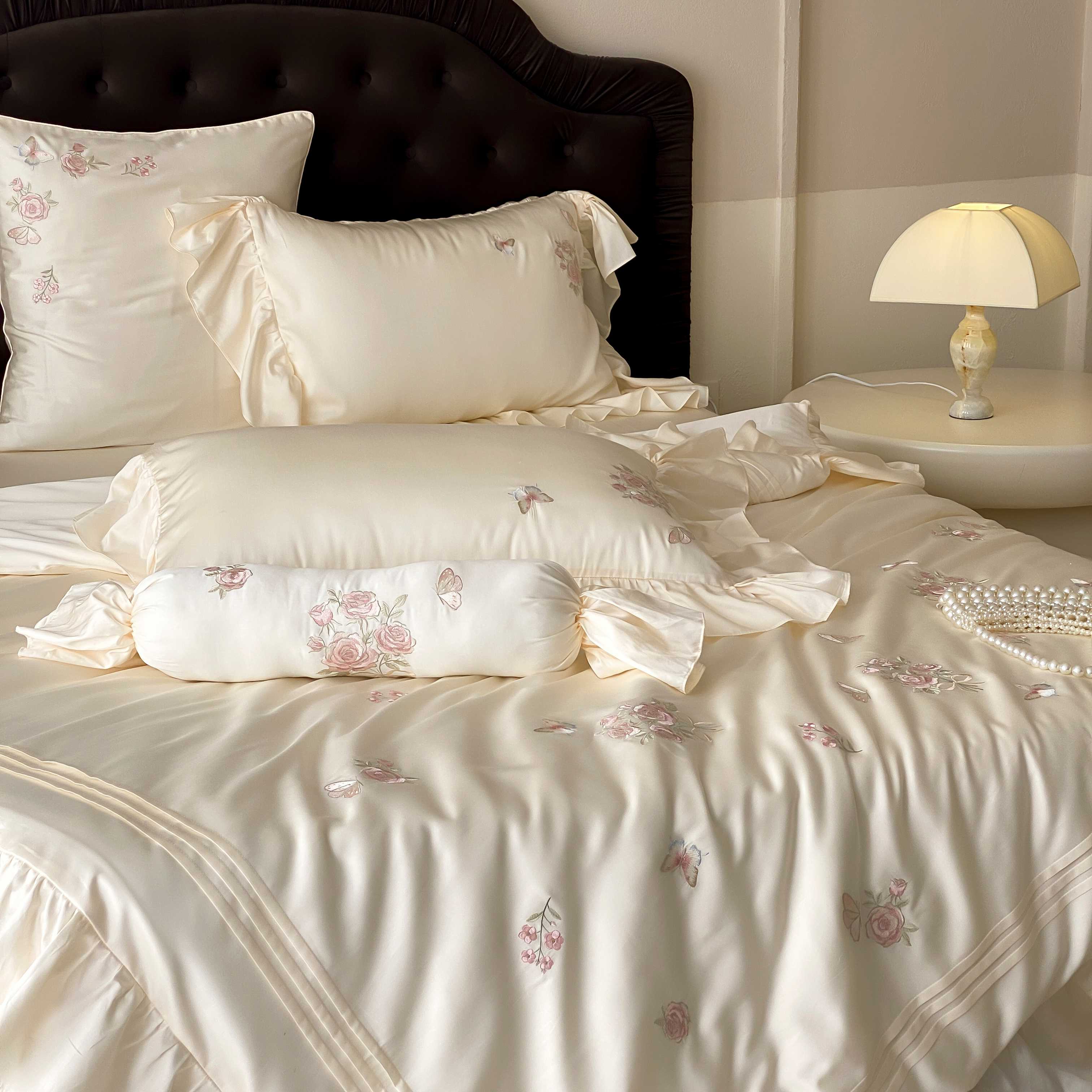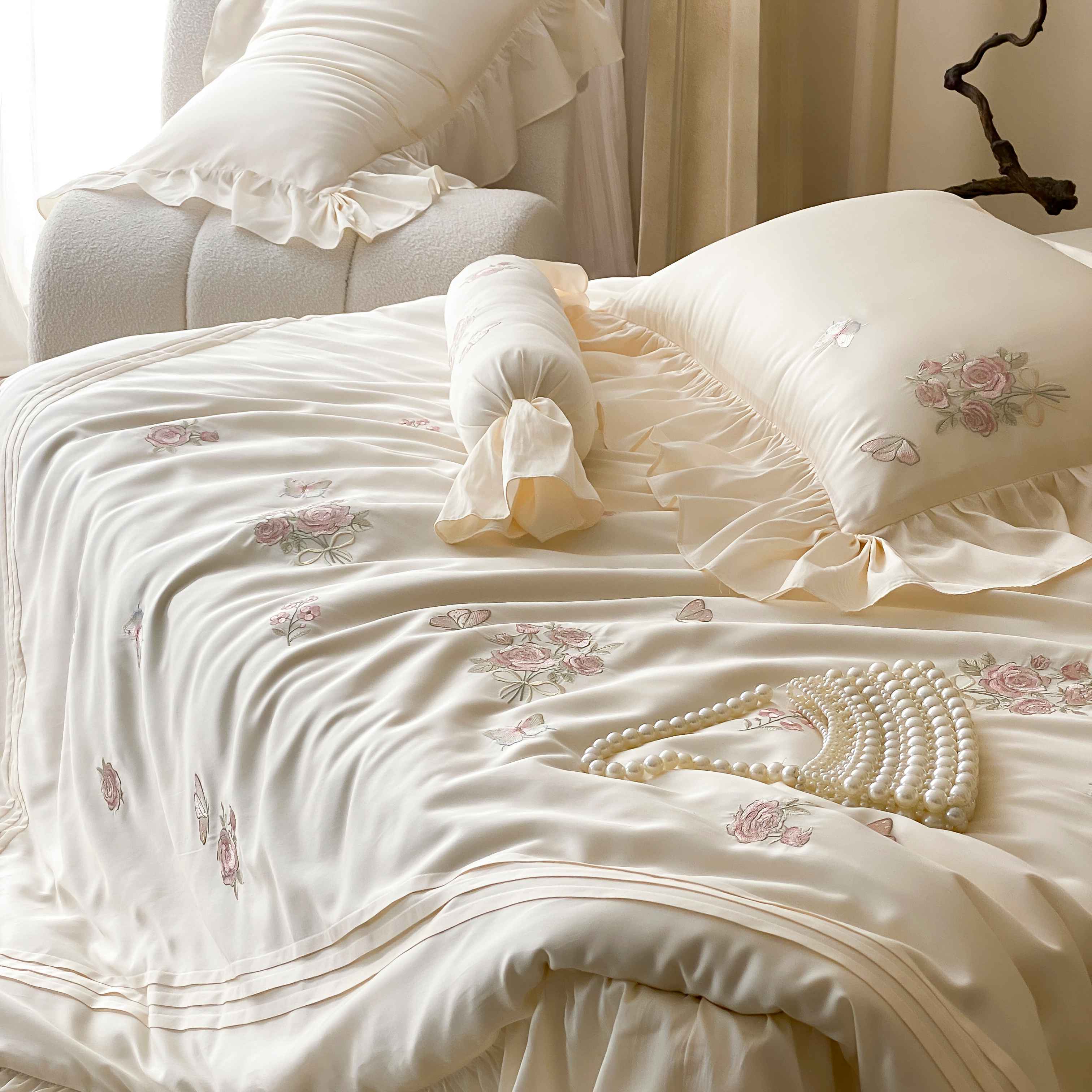 (总)MIU缪家居 2025春夏新款60支兰精天丝四件套-爱莎,爱莎-浅粉,爱莎-乳白
