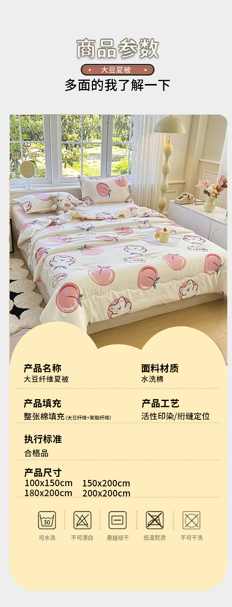 商品名称:友承家纺 2025新款A类母婴级大豆夏被夏凉被空调被 桃桃熊