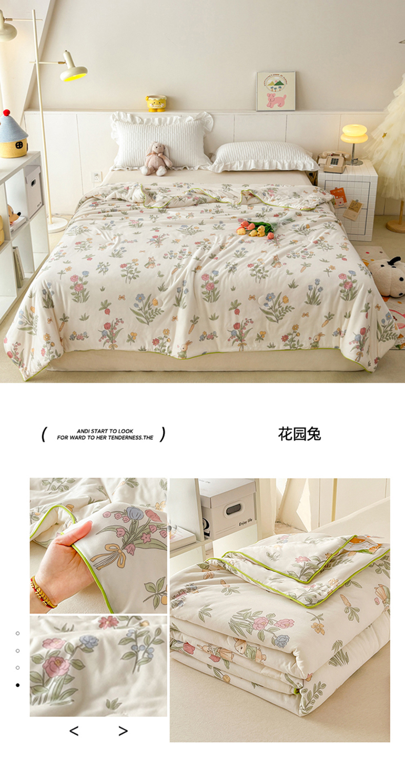 龙图家纺 2025新款A类母婴针织棉夏被印花卡通凉感丝夏凉被空调被 花园兔