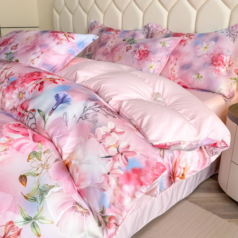 优纤家纺 2025新款水洗真丝四件套 花间时光