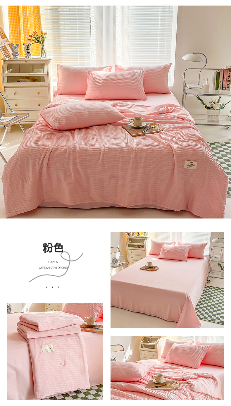 (总)斯卡诺家纺 2025新款直播爆款提花针织泡泡纱夏被四件套夏凉被空调被四件套,白灰色,白桔色,粉色,灰色,兰黄色,蓝色,绿加黄,紫色