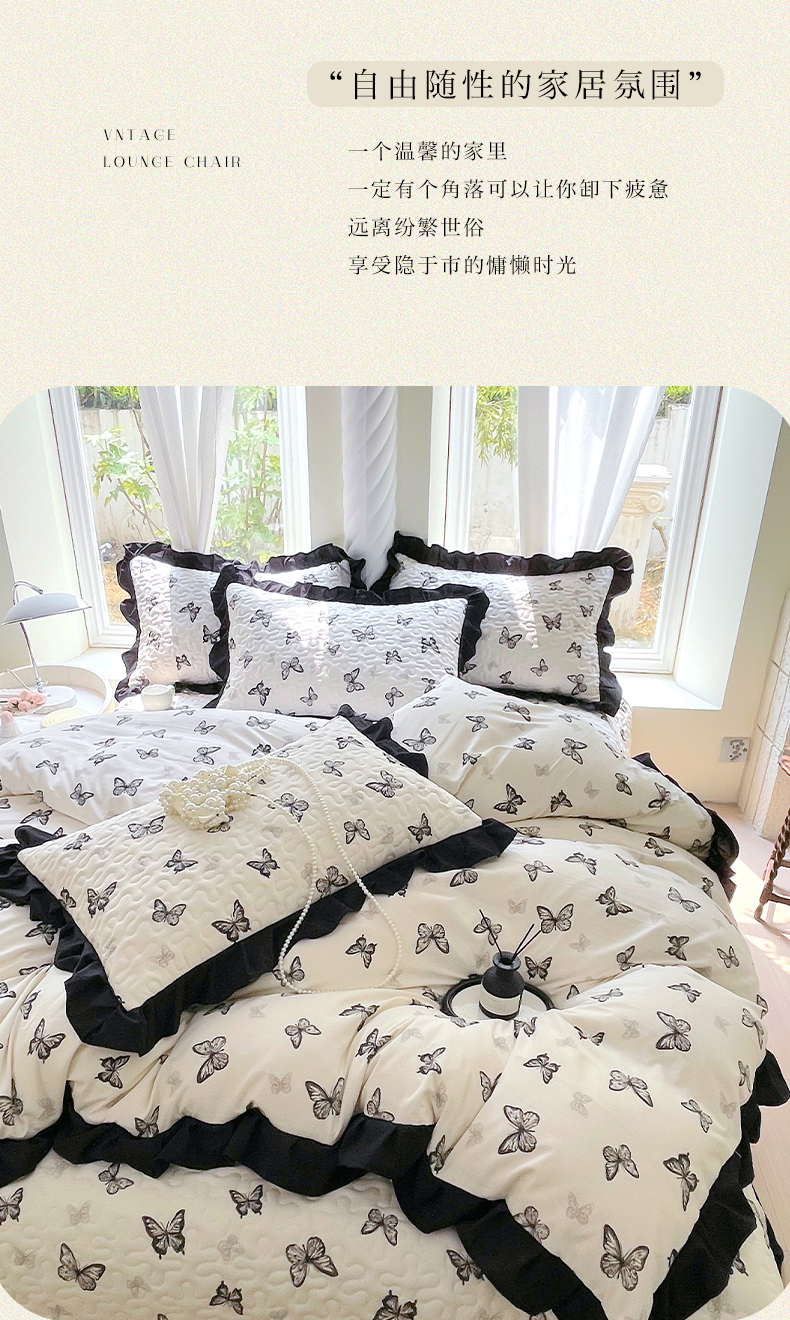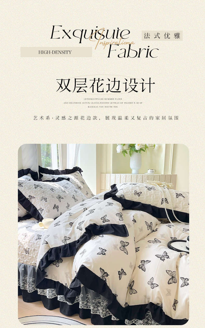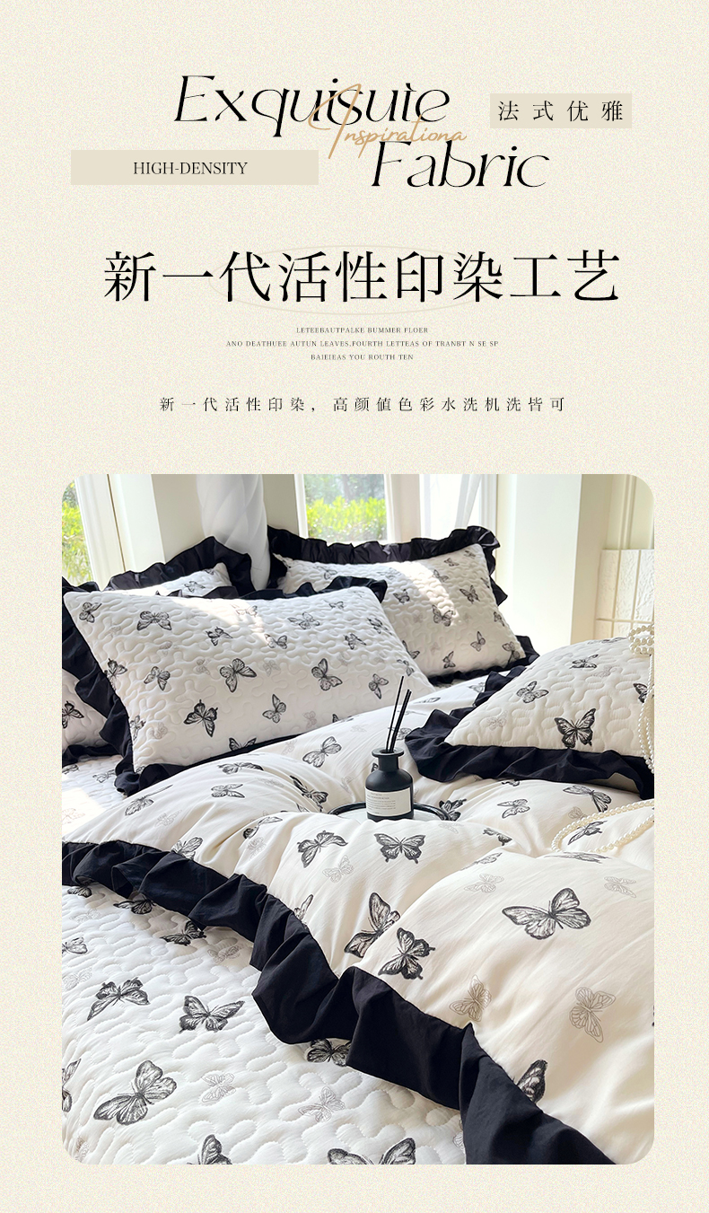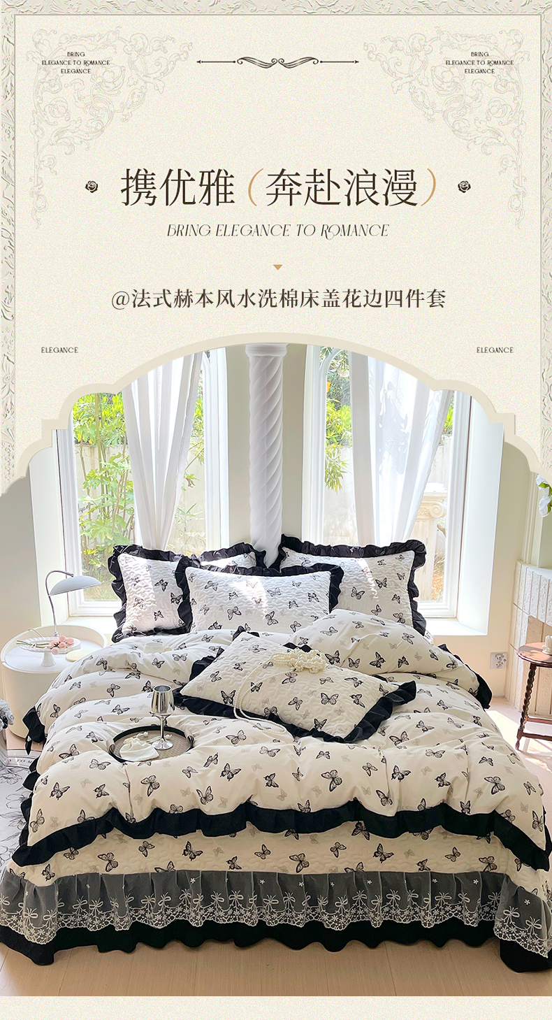 当前位置: 91家纺网 > 商品网购 > 床品套件 > 四件套 > 水洗棉四件套 > 雨彤家纺 2025年新款赫本风云朵水洗棉夹棉双层花边床盖四件套 蝴蝶-赫本风