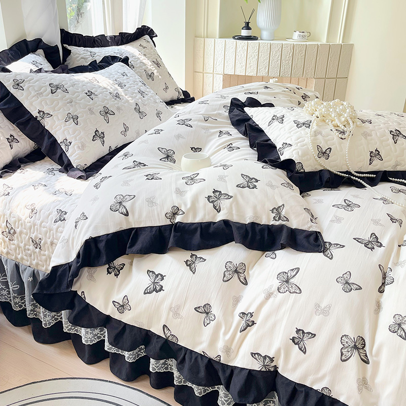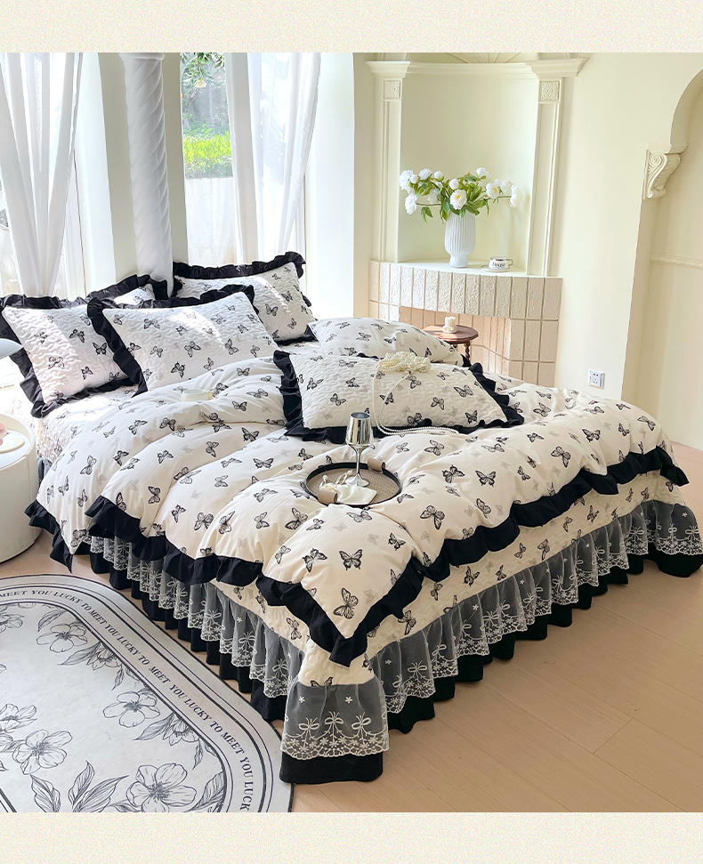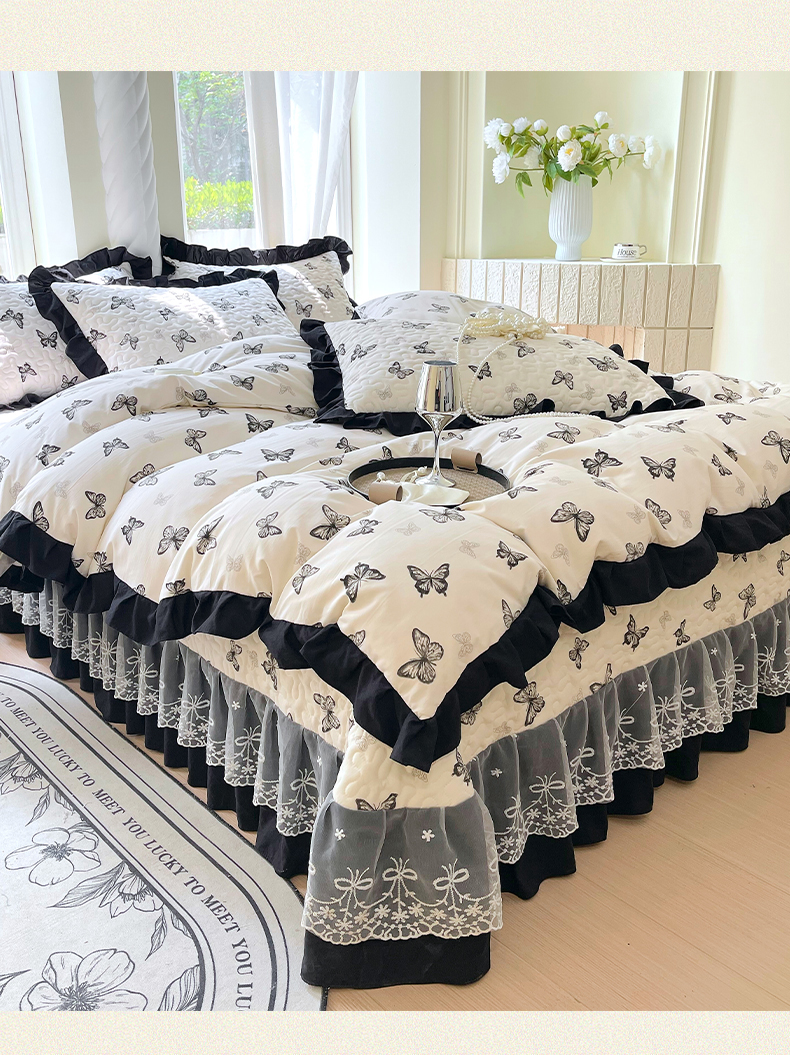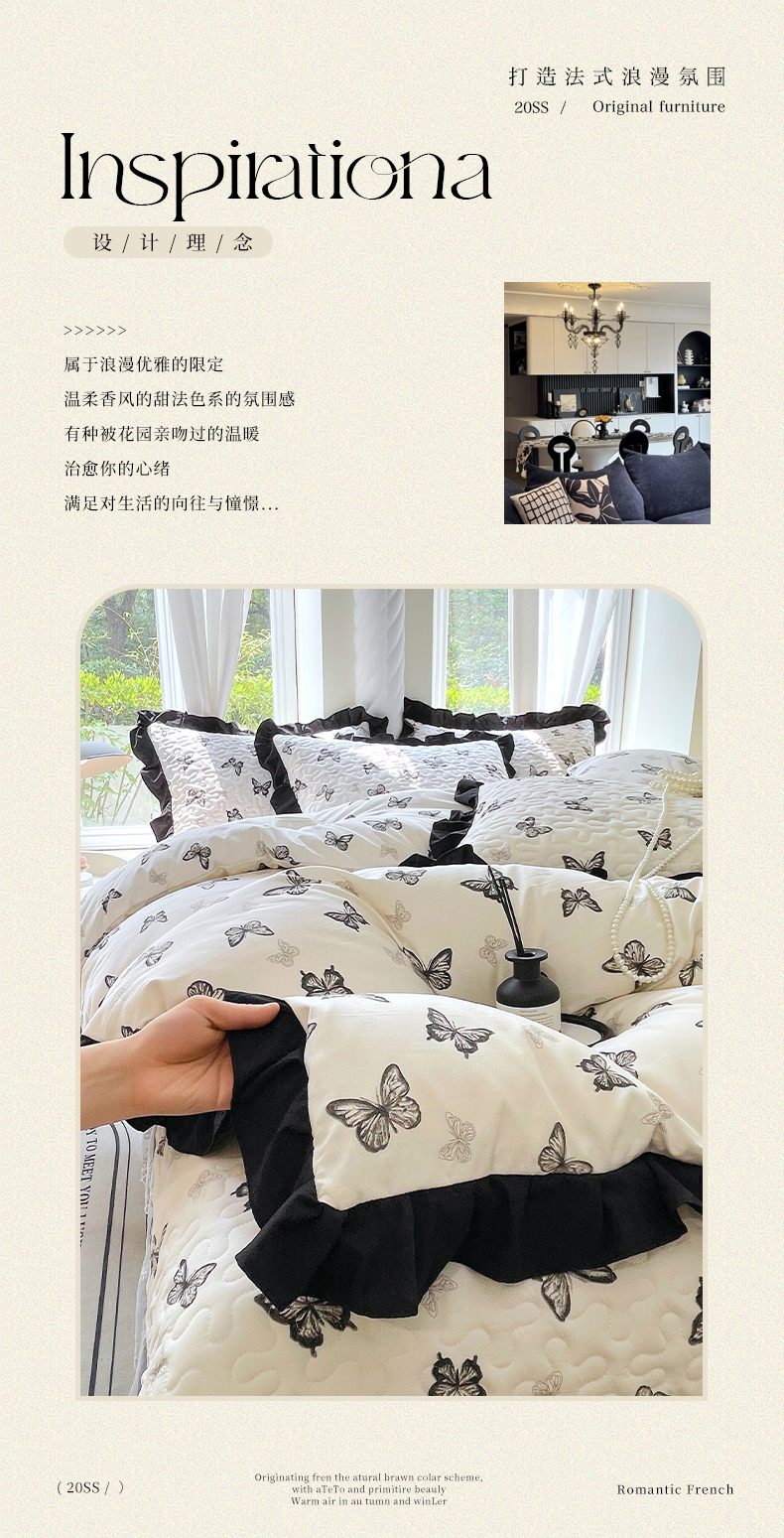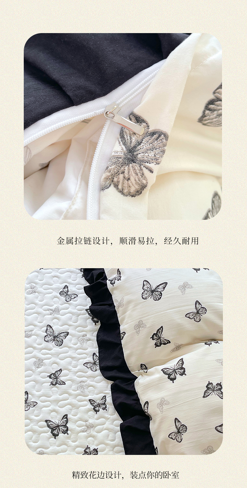 当前位置: 91家纺网 > 商品网购 > 床品套件 > 四件套 > 水洗棉四件套 > 雨彤家纺 2025年新款赫本风云朵水洗棉夹棉双层花边床盖四件套 蝴蝶-赫本风