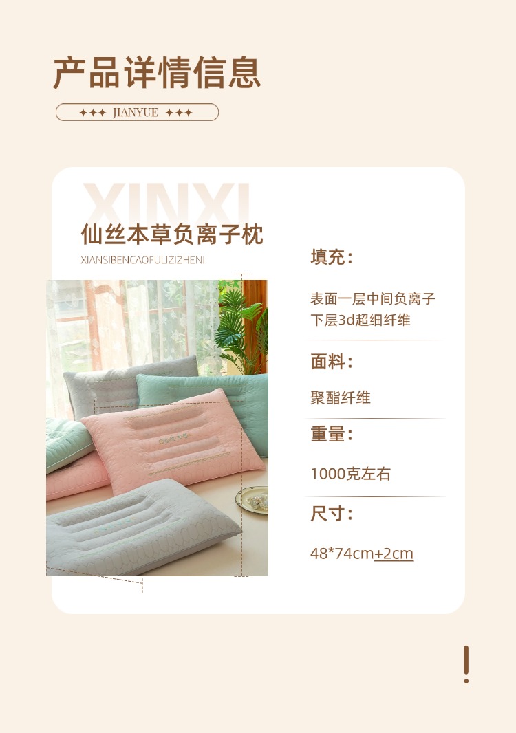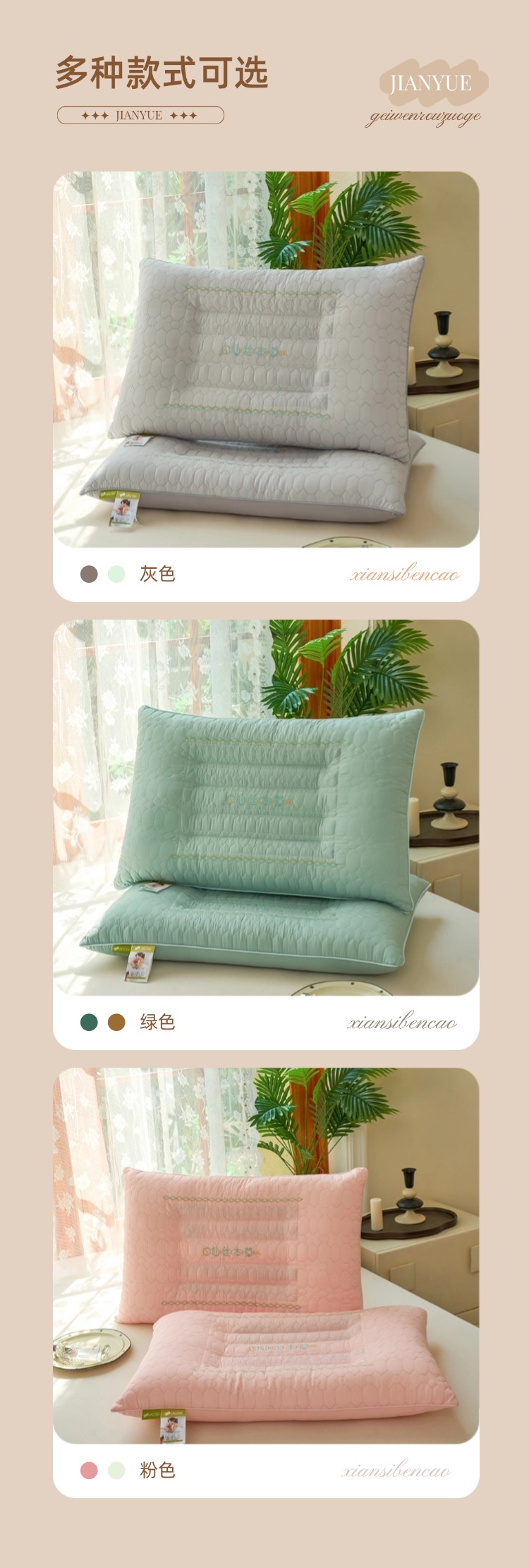 商品名称:(总)幸运草 2025新款仙丝本草绗绣枕头 单人成人家用护颈枕枕芯