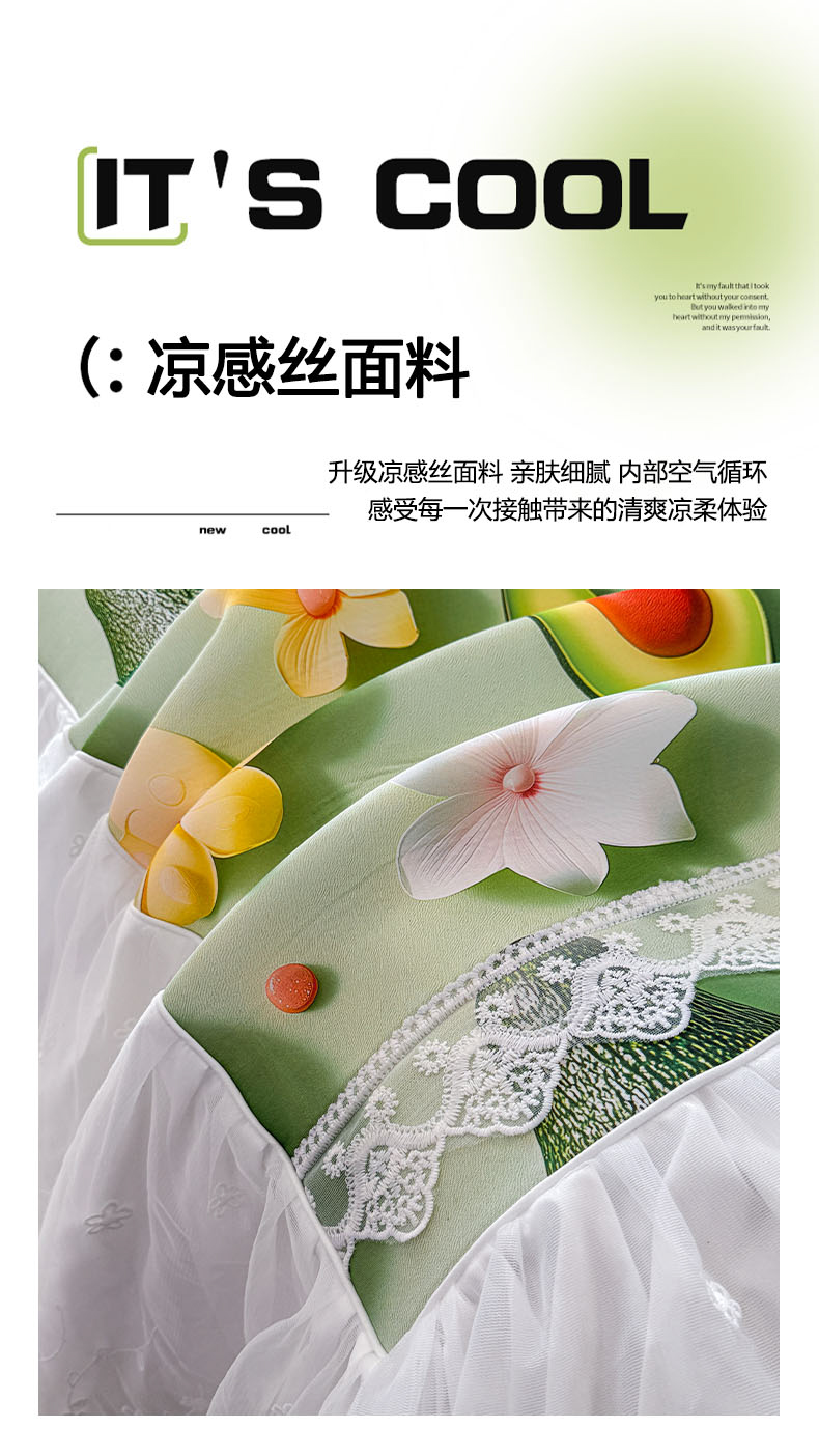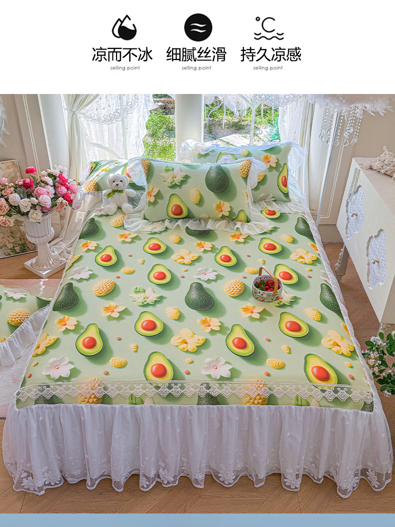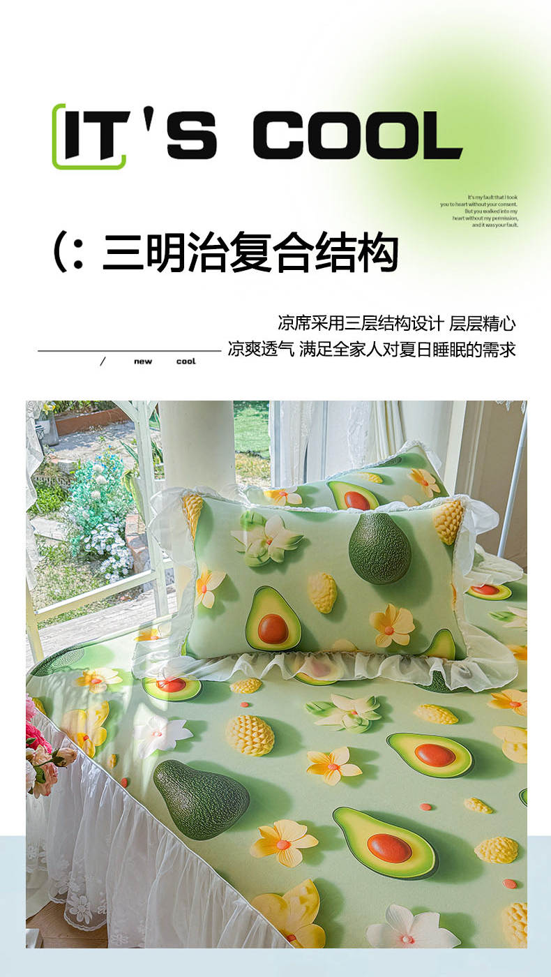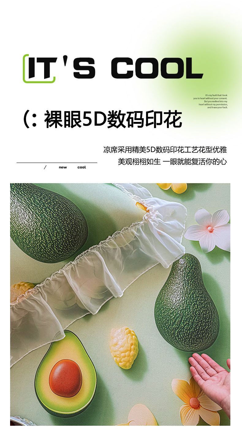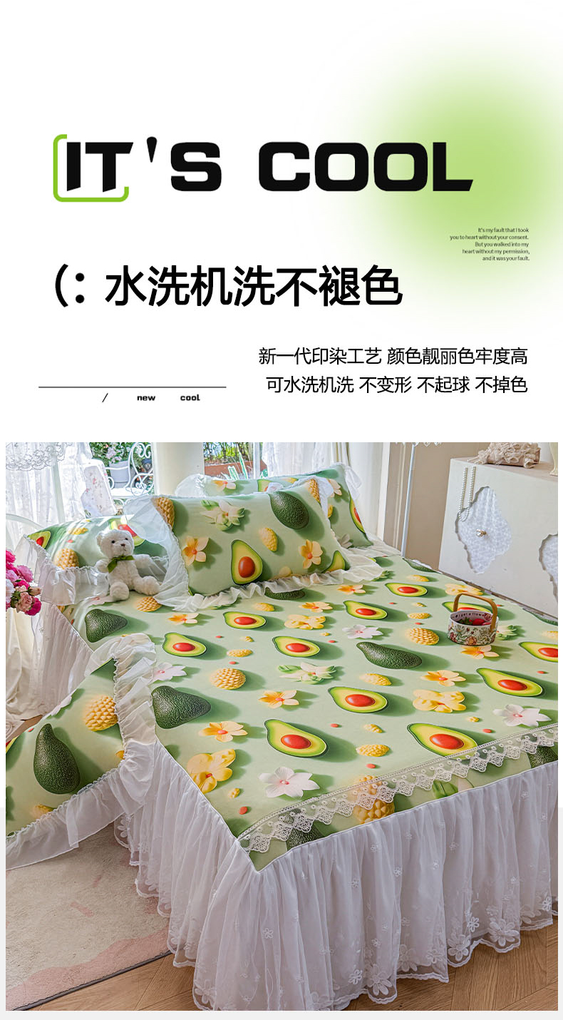 商品名称:罗艺轩 2025新款冰丝5D印花床裙凉席席子 牛油果绿