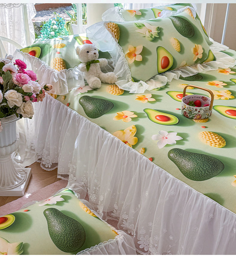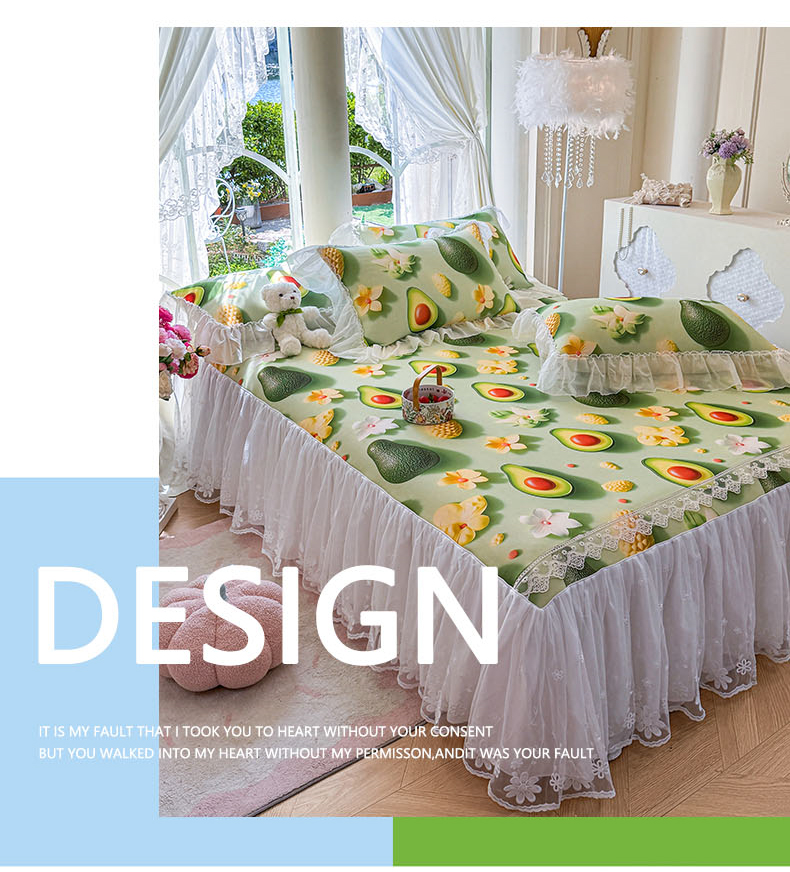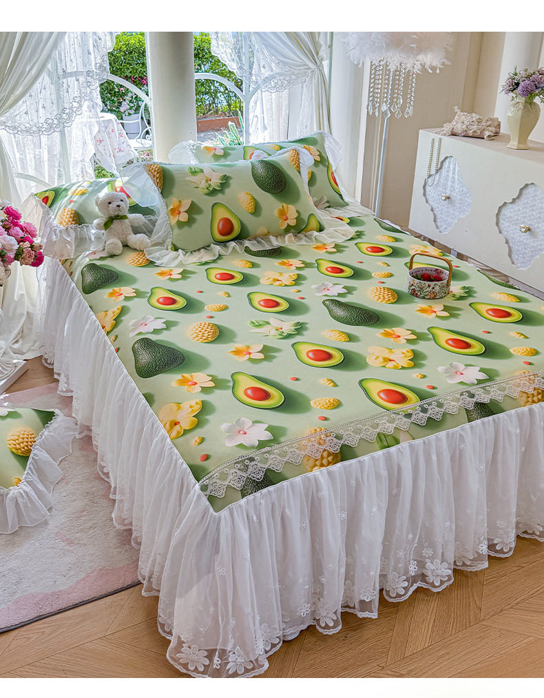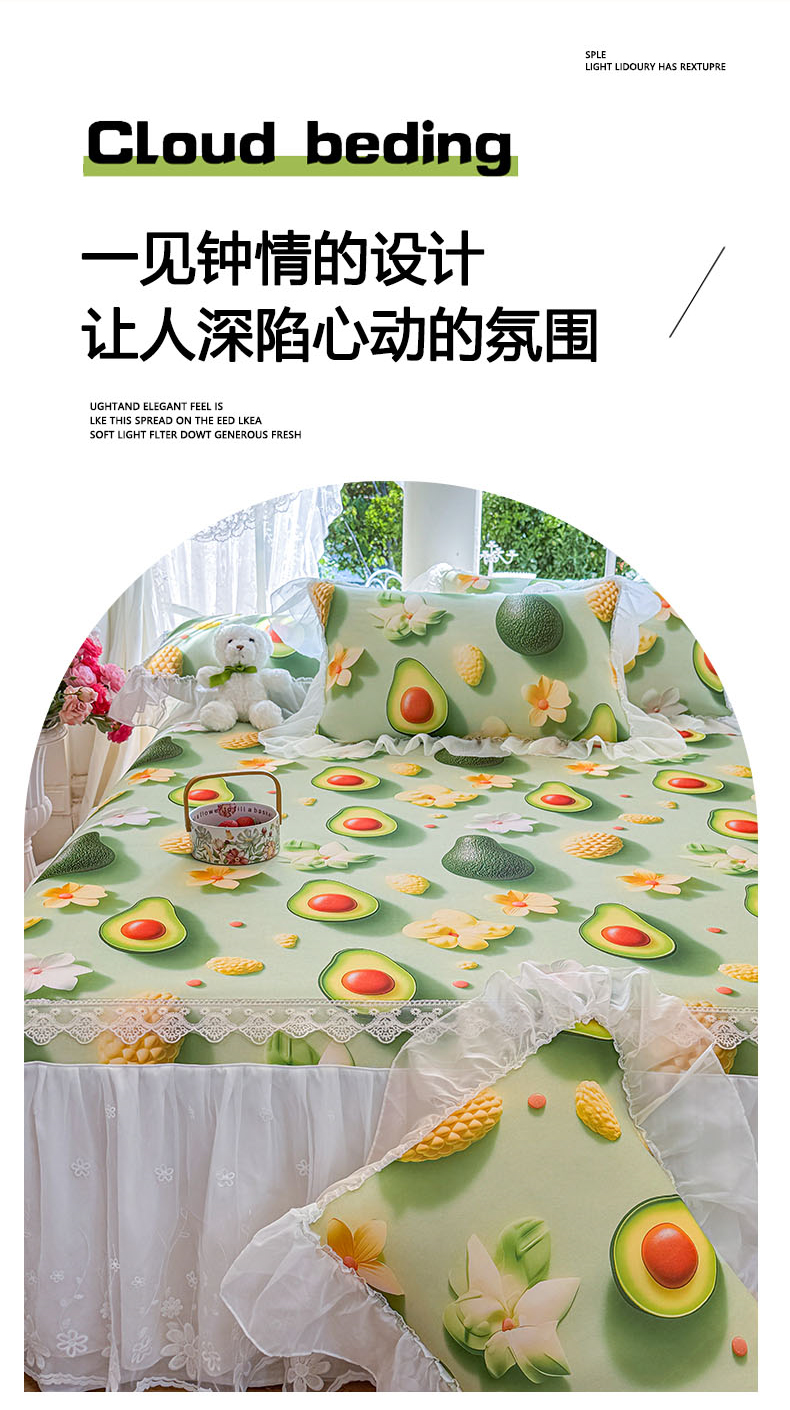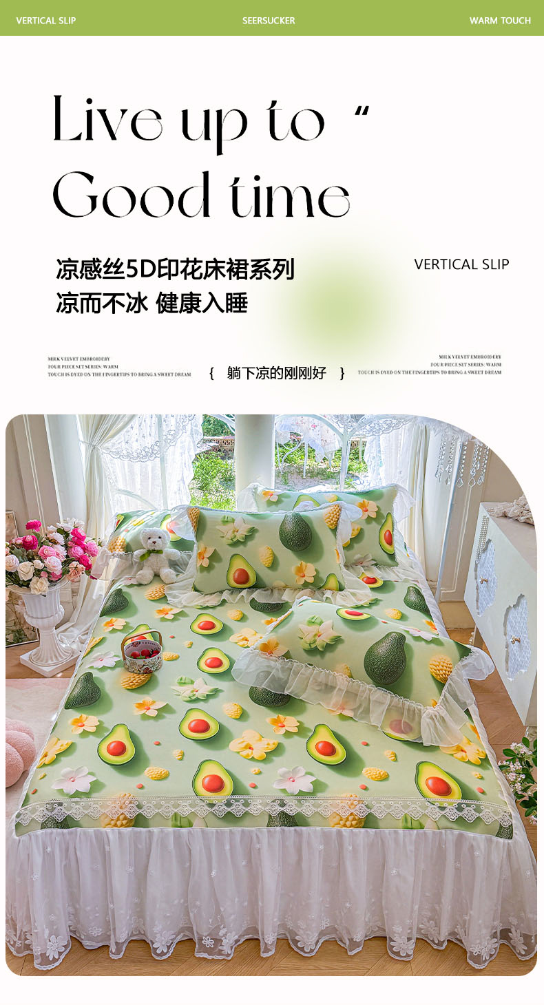 商品名称:罗艺轩 2025新款冰丝5D印花床裙凉席席子 牛油果绿