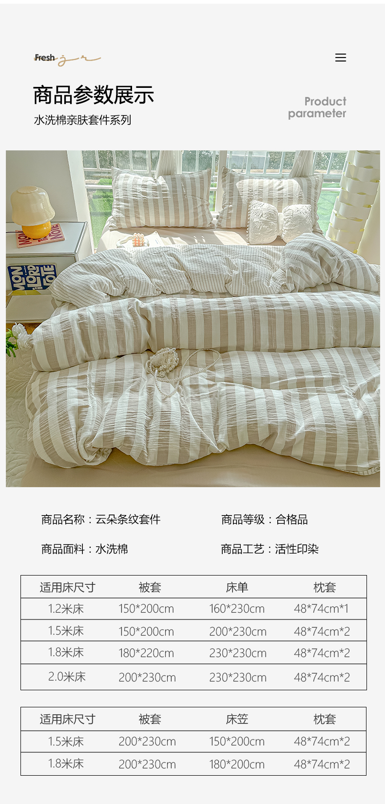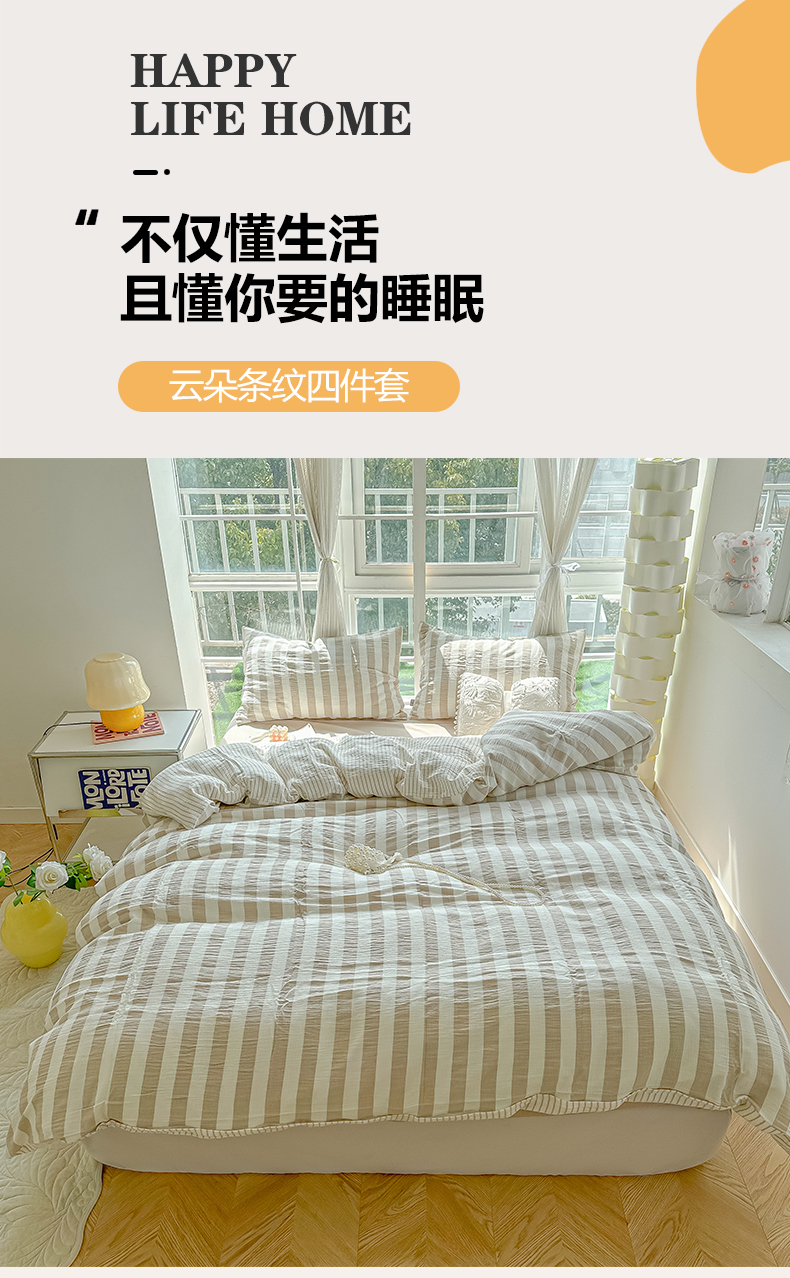 当前位置: 91家纺网 > 商品网购 > 床品套件 > 四件套 > 水洗棉四件套 > 缦绣阁家纺 2025新款水洗棉亲肤云朵条纹四件套小清新条纹床单款床笠款4件套学生宿舍三件套 云朵条纹奶咖