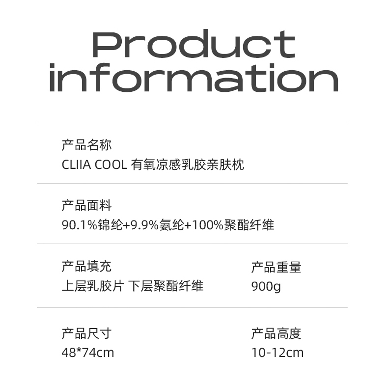 当前位置: 91家纺网 > 商品网购 > 枕头/枕芯/保健枕/颈椎枕 > 普通枕芯 > (总)麦肯锡 2025新款CLIIA COOL凉感系列 有氧凉感乳胶亲肤枕-产品图