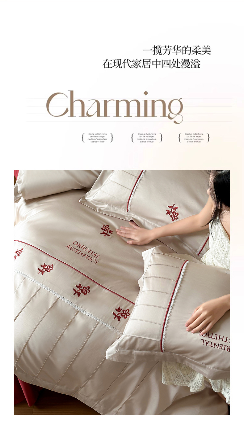 (总)红番天家居馆 (控价)2025新款全棉云柔棉磨毛+磨毛肌理纹+工艺款四件套-珠光(每款供货价的基础上一切活动券后+100),珠光 初秋,珠光 素采,珠光-盈盈