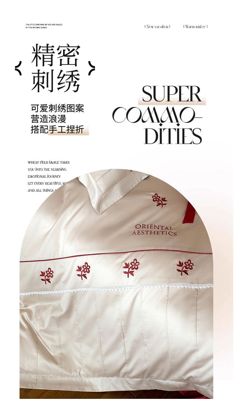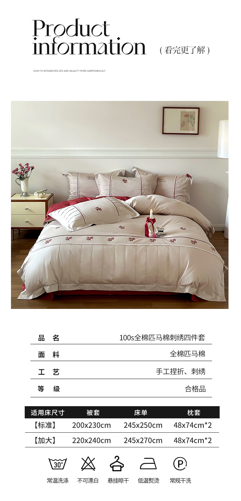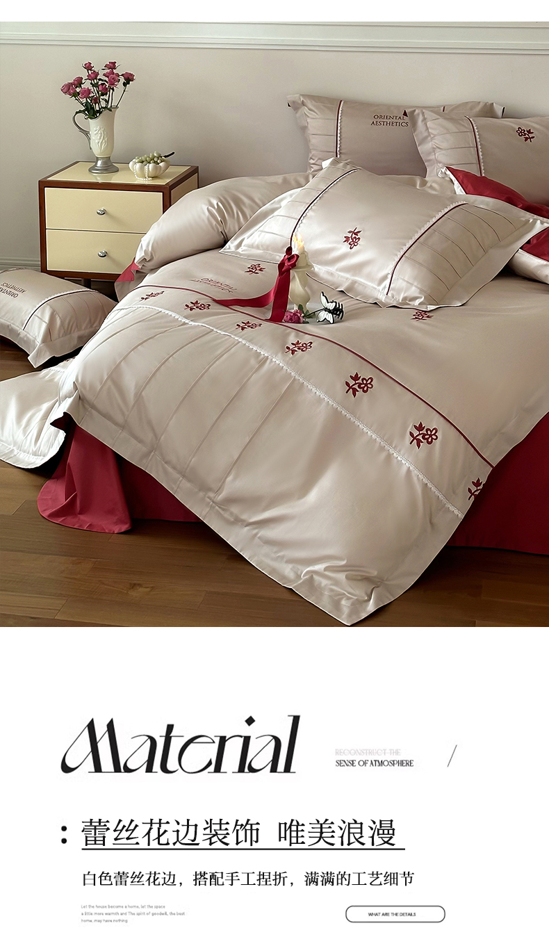 (总)红番天家居馆 2025新款全棉纯棉贡缎长绒棉手工捏折刺绣蕾丝四件套-觅春,觅春-夹心粉,觅春-午后清晨,觅春-云朵吐司