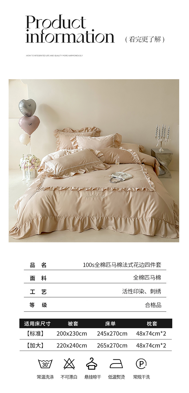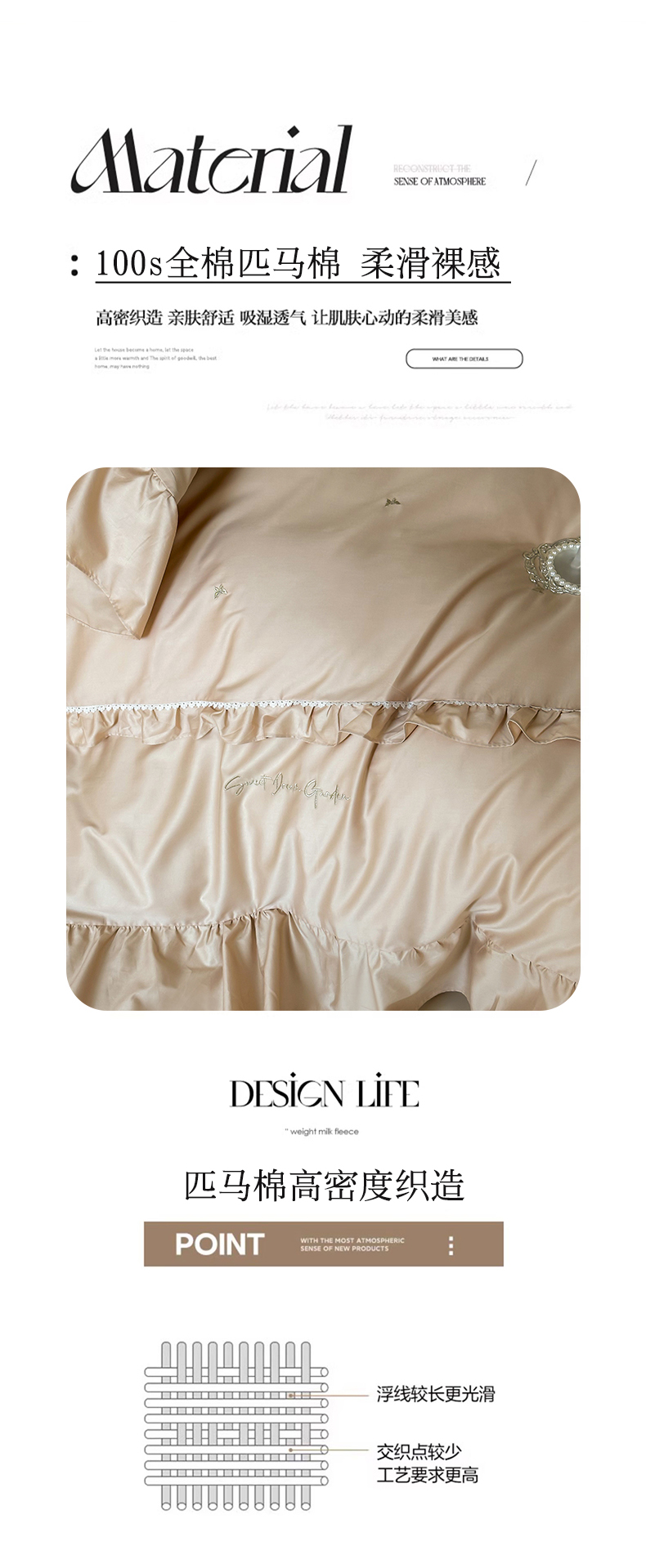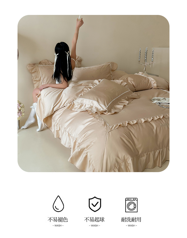 商品名称:红番天家居馆 2025新款全棉纯棉贡缎长绒棉法式刺绣花边四件套-蝶梦 蝶梦-浅香槟