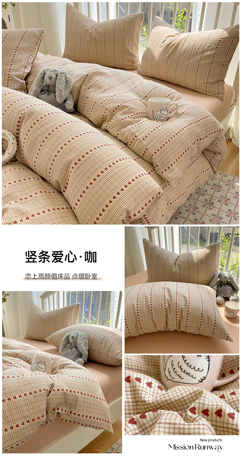 当前位置: 91家纺网 > 商品网购 > 床品套件 > 四件套 > 双层纱四件套 > XIWEN-希文家纺 2025新款A类全棉纯棉有氧双层纱四件套 竖条爱心-咖